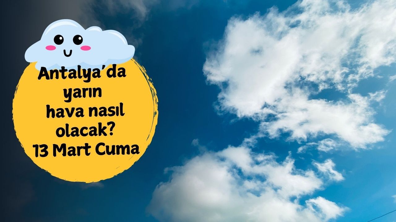 13 Mart Cuma günü Antalya merkezde havanın parçalı bulutlu olması bekleniyor. Sabah saatlerinde sıcaklık yaklaşık 10-11 derece civarında olacak. Gün ilerledikçe sıcaklık artarak öğle saatlerinde 20 dereceye yaklaşacak. Akşam saatlerinde ise sıcaklık yeniden 14 derece civarına düşecek. Gün boyunca yağış beklenmezken bulutluluk zaman zaman artabilir. Rüzgarın genellikle hafif esmesi tahmin ediliyor.