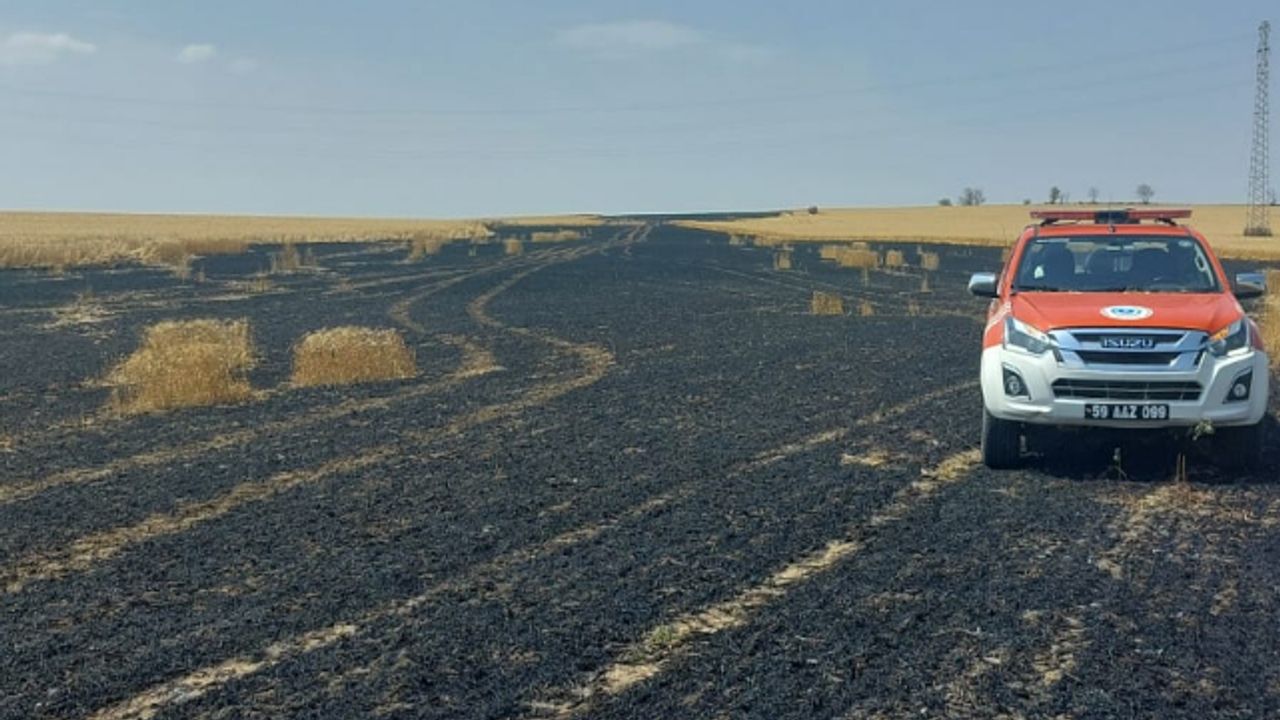 İtfaiyenin müdahalesiyle söndürülen yangında, yaklaşık 15 dönümlük buğday ekili alan zarar gördü.