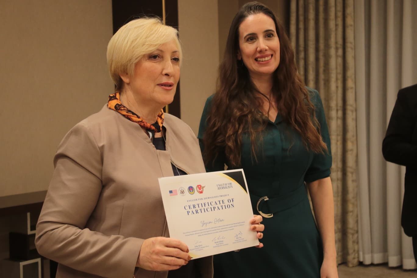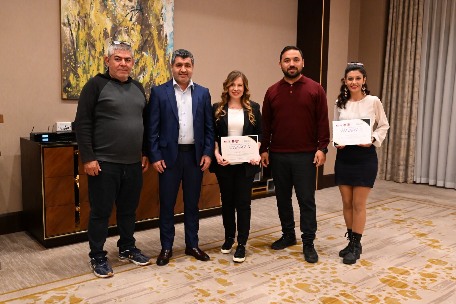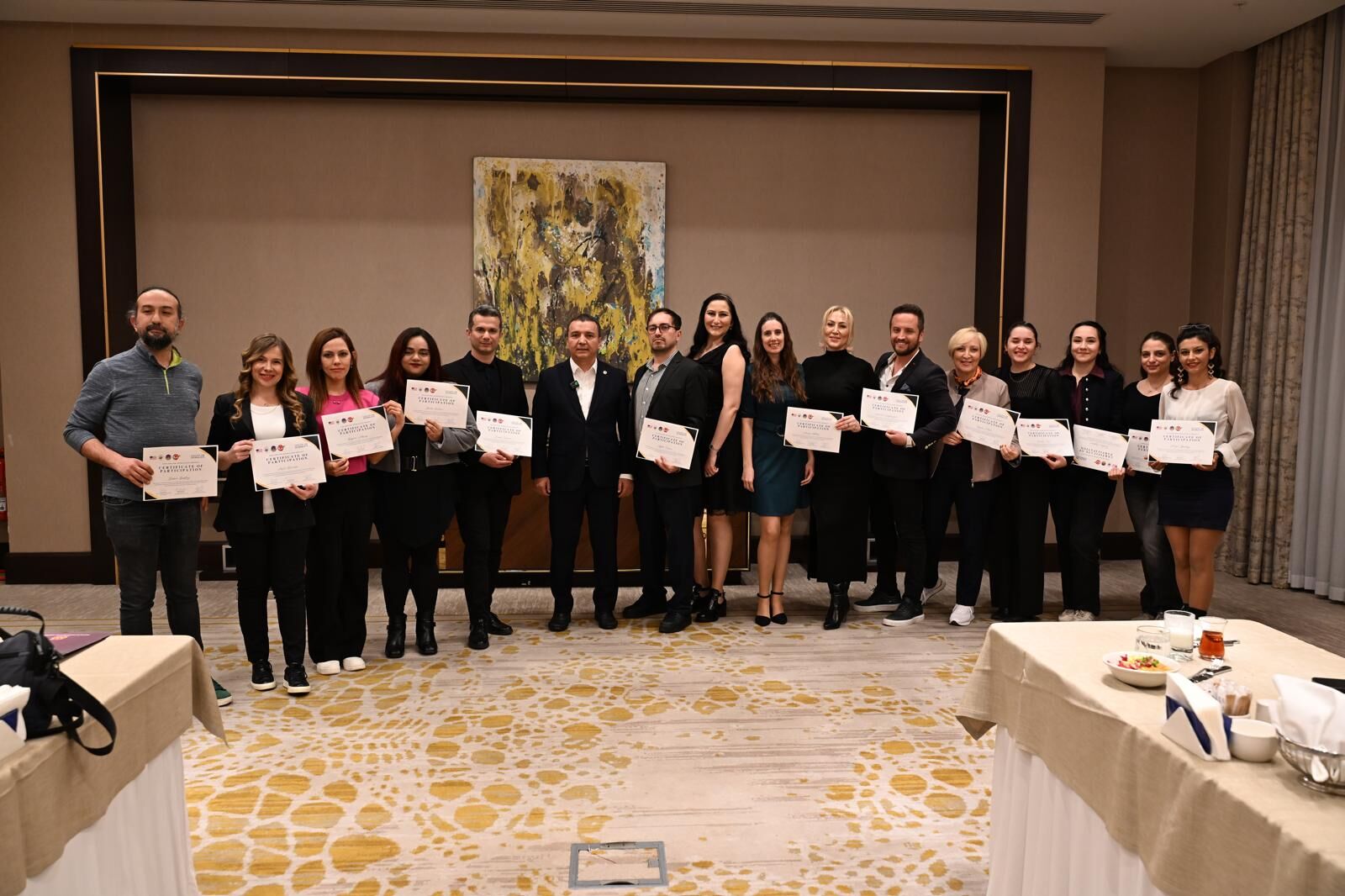 Törene AGC Yönetim Kurulu üyeleri Ersin Aydın, Ahmet Duran Yenigün, Hayrettin Deniz, Mehmet Kılıçaslan, Süleyman Elçin, Mediha Öztop Düden, Mehmet Çınar, AGC Başkan Yardımcısı ve TSYD Antalya Şube Başkanı Şifa Çiçek ile sertifika alan gazeteciler katılım sağladı. Başkan İdris Taş, eğitim sürecine katkı sunan eğitmenler Ceyda Arıkan ve Tuğba Çimen’e, ev sahipliği için Double Tree by Hilton Antalya City Center Yönetim Kurulu Başkanı Barış Babüroğlu’na ve programa emek veren tüm meslektaşlarına teşekkürlerini sundu. Tören, eğitimi başarıyla tamamlayan gazetecilere sertifikalarının takdim edilmesi ve toplu fotoğraf çekimiyle sona erdi.