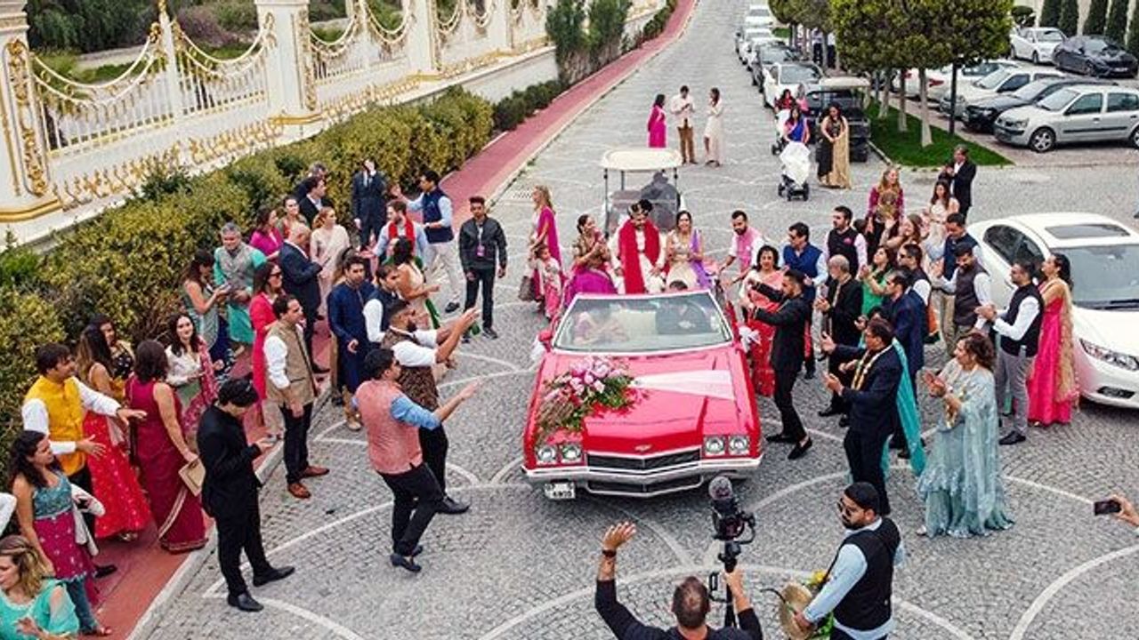 Titanic Mardan Palace'da gerçekleştirilen düğüne Şili'den 350 kişi geldi. Düğün için Hindistan'dan 23'ü aşçı ve yardımcıları olmak üzere 43 kişilik ekip de Antalya'ya geldi. 3 gün 3 gece sürecek düğün için Uttamchandani ve Adwani aileleri hiçbir masraftan kaçınmadı. Gelin Roshni Uttamchandani ile damat Rajeev Adwani, makyöz, stil danışmanı, yardımcılarından oluşan ekibi ile özel uçakla Antalya'ya geldi. Düğün merasimi için özenle hazırlanan gelin ile damat, nikahın yapılacağı plaja arkadaşlarının düzenlediği eğlence kortejiyle geldi. Damat Rajeev Adwani, iki kız kardeşi ile birlikte üstü açık araçla sahile geldi. Gelin, 4 kişinin taşıdığı çiçeklerden oluşan seremoni tahtı altında yürüyerek damadın yanına ulaştı.