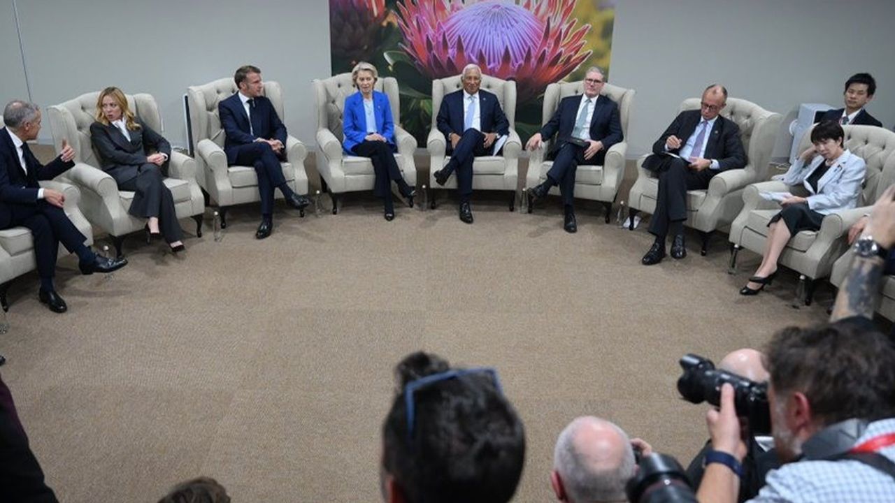 Avrupalı ülkelerden ve Ukrayna’yı destekleyen diğer ülkelerden yetkililer, Güney Afrika’daki G20 Zirvesi’nde ABD’nin Rusya-Ukrayna Savaşı’nı sona erdirmeyi amaçlayan 28 maddelik planına ilişkin görüşme gerçekleştirdi. Ukrayna destekçisi Avrupa ülkelerinin liderleri görüşmede ABD’nin 28 maddelik barış planına verilecek cevaba ve kendi önerilerine ilişkin başlıkları ele aldı. Önce G20 zirvesine katılan Almanya, İngiltere ve Fransa’dan oluşan "Avrupa Üçlüsü" (E3) ülkelerinin liderleri Almanya Başbakanı Friedrich Merz, Fransa Cumhurbaşkanı Emmanuel Macron, İngiltere Başbakanı Keir Starmer bir araya geldi. Söz konusu toplantıya ilişkin Merz, Macron ve Starmer birlikte oldukları toplantıdan bir fotoğrafı sosyal medya üzerinden paylaşarak, "Dostlar, ortaklar, müttefikler Ukrayna'ya destekte birleştik" ifadelerini kullandı.