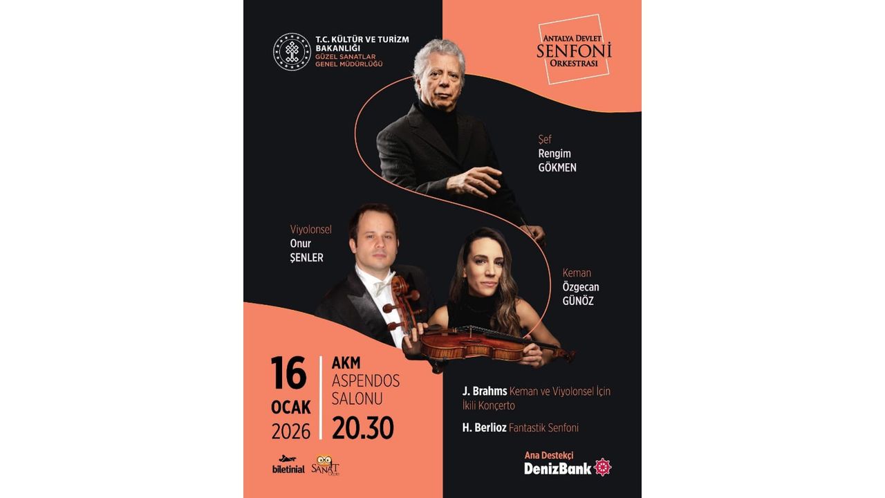 Antalya Devlet Senfoni Orkestrası (ADSO), DenizBank Konserleri kapsamında müzikseverleri romantik dönemin iki başyapıtıyla buluşturmaya hazırlanıyor. 16 Ocak 2026 Cuma akşamı saat 20.30’da AKM Aspendos Salonu’nda gerçekleşecek konserde, Alman ve Fransız romantizminin iki güçlü temsilcisi aynı programda yer alacak. Gecenin şefliğini, Türkiye’nin önde gelen orkestra şeflerinden Prof. Rengim Gökmen üstlenirken, konserin solistleri kemanda Özgecan Günöz ve viyolonselde Onur Şenler olacak. Program hem solistlerin virtüözitesini hem de orkestranın anlatım gücünü ön plana çıkaran eserlerden oluşuyor. Konserin ilk bölümünde Johannes Brahms’ın Keman ve Viyolonsel için İkili Konçertosu seslendirilecek. Brahms’ın geç dönem eserleri arasında yer alan bu özel yapıt, iki solistin adeta karşılıklı bir diyalog kurarcasına ilerleyen müzikal çizgisiyle dikkat çekiyor. Konçerto formunu oda müziği inceliğine yaklaştıran eser, aynı zamanda bestecinin yakın çevresindeki sanatçı dostluklarına uzanan tarihsel arka planıyla “yeniden buluşma” duygusunu güçlü biçimde hissettiriyor.
