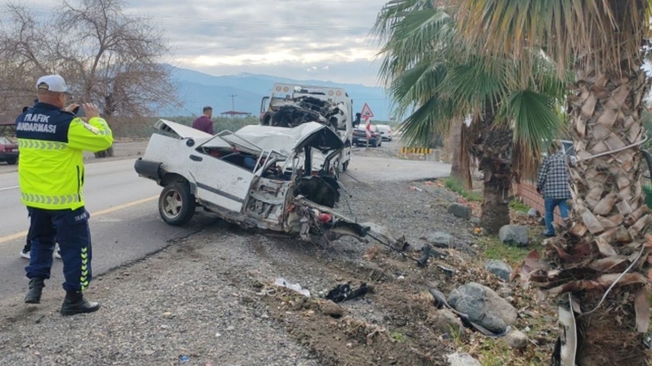 Kadir E. idaresindeki 31 ANB 208 plakalı Fiat Tofaş marka otomobil, sürücüsünün direksiyon hakimiyetini kaybetmesiyle yol kenarındaki palmiye ağacına çarptı. Çarpmanın şiddetiyle ikiye bölünen araçta sürücü yaralandı. Yaralı sürücü olay yerine gelen ambulansla hastaneye kaldırılırken kaza anı anbean güvenlik kamerasına yansıdı.