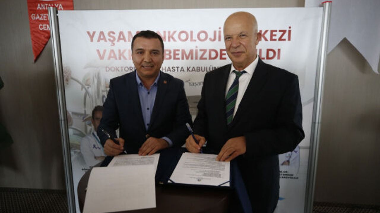 Antalya Yaşam Hastaneleri’nin Vakıf Şubesi’nde hizmet vermeye başlayan ‘Onkoloji Merkezi’nin tanıtım toplantısı sonunda AGC Başkanı İdris Taş ve Yaşam Hastaneler Grubu Yönetim Kurulu Başkanı Dr. Cemal Özkan, AGC üyeleri ve birinci derecede yakınlarının faydalanabileceği indirim ve iş birliği protokolüne imza attı. Akra Barut Otel’de gerçekleştirilen protokolde öncelikle 5 milyon dolarlık son teknoloji ürünü cihaz yatırımlarıyla kanser hastalarına tanı ve tedavi sürecinde önemli katkılar sağlayacak Onkoloji Merkezi ile ilgili bilgilendirme yapıldı.
