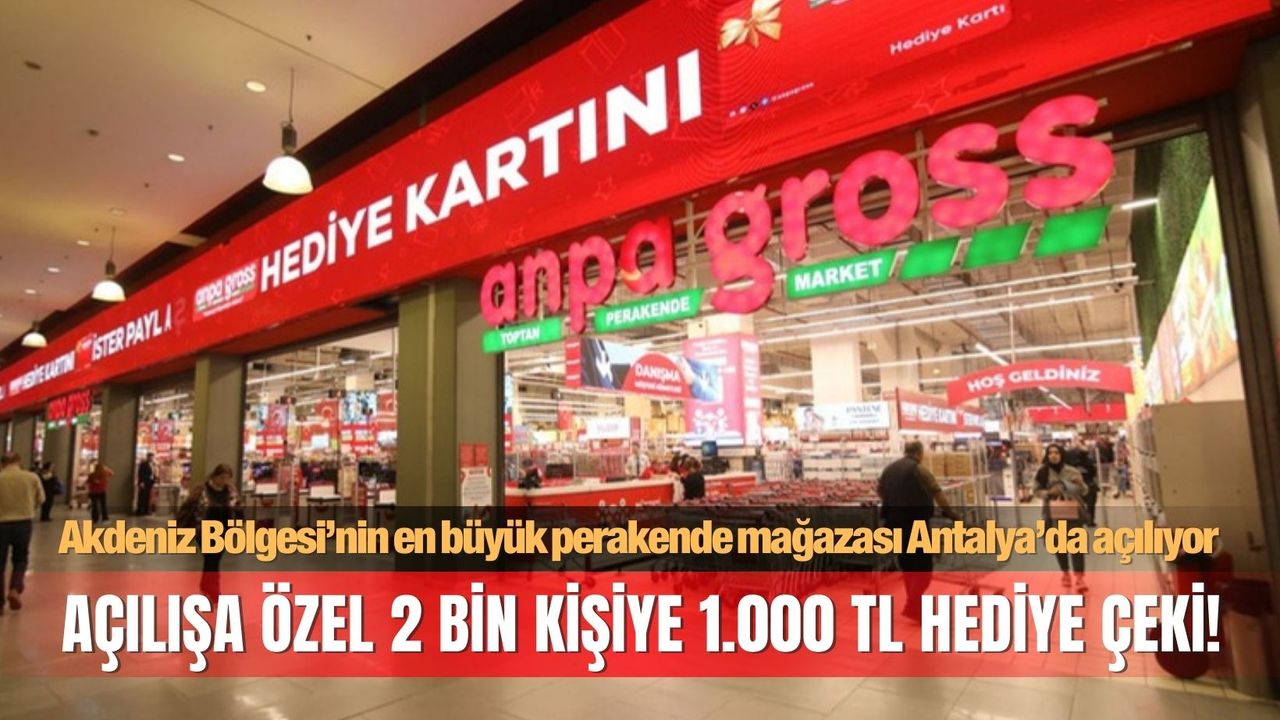 5 bin araç kapasiteli otoparkı bulunan mağazada açılışa özel olarak Antalya’ya özgü kampanyalar kapsamında ilk 2 bin kişiye 1.000 TL değerinde hediye çeki verilirken, temel gıda ve teknoloji ürünlerinde yüzde 40–50 oranında indirim uygulanacak. Anpa Gross yıl boyunca “365 gün hesaplı fiyat” anlayışıyla hizmet verecek.
