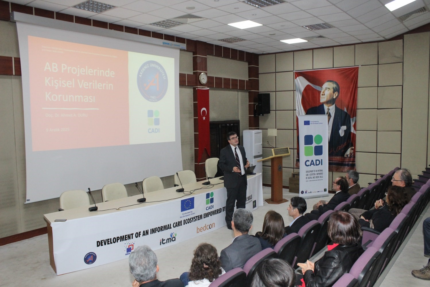Akdeniz Üniversitesi’nde bakım hizmetlerinde dijitalleşme ve sürdürülebilirliği birlikte ele alan "Dijital ve Yeşil Becerilerle Güçlendirilmiş Bakım Ekosistemi (CADI)" Projesi’nin açılış programı gerçekleştirildi. Proje, sağlık, teknoloji, kamu ve sivil toplum paydaşlarını bir araya getirerek bakım alanında yenilikçi ve kalıcı bir model oluşturmayı hedefliyor. Avrupa Birliği Erasmus+ Programı kapsamında desteklenen ve Akdeniz Üniversitesi öğretim üyesi, Avrupa Birliği Araştırma ve Uygulama Merkezi (AKVAM) Müdürü Doç. Dr. Mustafa Çoban’ın yürütücülüğünü yaptığı CADI Projesi’nin açılış programı, İktisadi ve İdari Bilimler Fakültesi Yavuz Tekelioğlu Konferans Salonu’nda yapıldı. Programa üniversite yöneticileri, akademisyenler, kamu kurumları temsilcileri, sivil toplum kuruluşları ve proje paydaşları katıldı.