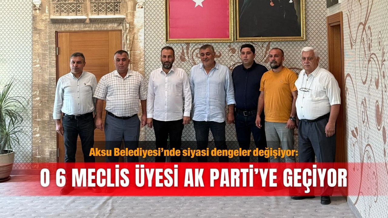 AK Parti’ye katılması beklenen meclis üyeleri: Harun Hor, Mehmet Şirin Altay, Mustafa Ceylan, Mehmet Alptekin, Yaşar Karakartal, Hüseyin Yılmaz. Bugün tamamlanacak üyelik süreçleri, yarın takılacak rozetlerle birlikte resmileşecek ve Aksu’nun siyasi dengelerinde önemli bir dönüm noktası daha yaşanmış olacak.