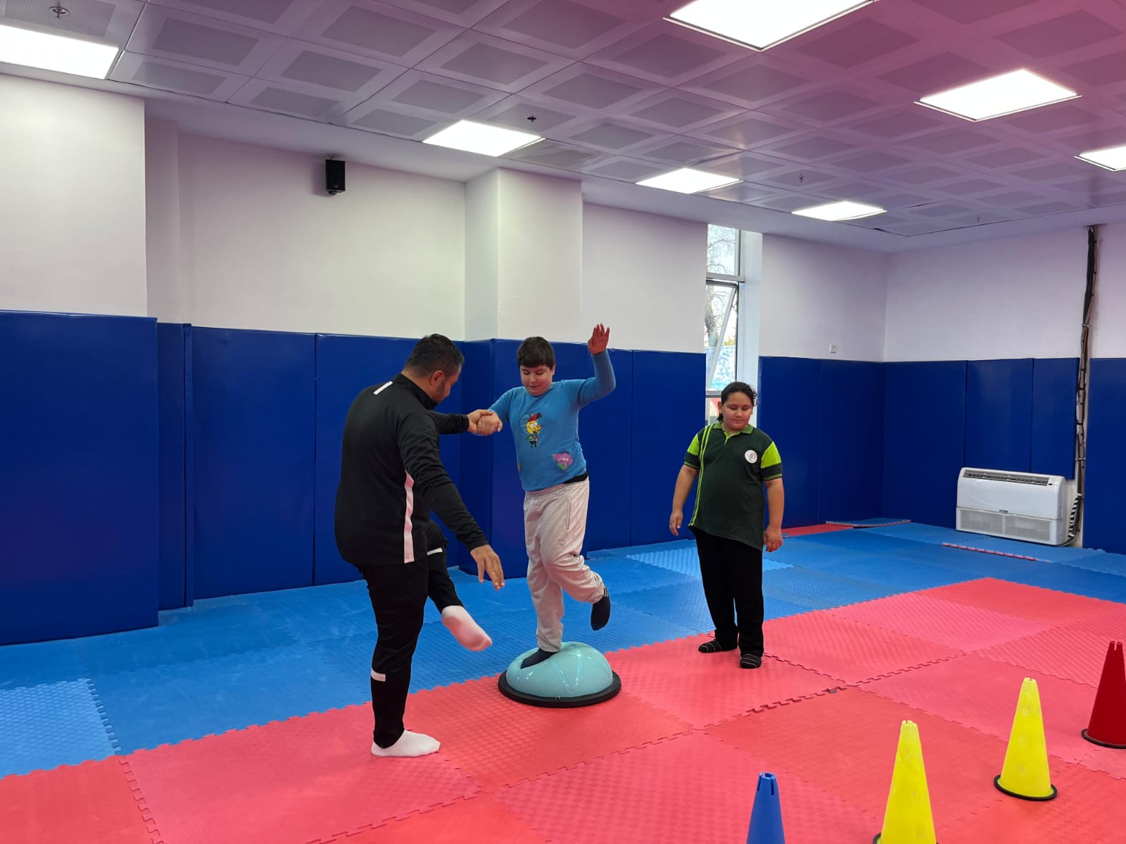 Aksu Gençlik ve Spor İlçe Müdürlüğü bünyesinde görev yapan spor uzmanı ve antrenörler, Gençlik ve Spor Bakanlığı Spor Genel Müdürlüğü öncülüğünde yürütülen “Mutlu Çarşamba” projesi kapsamında Pelin Cemal Kütahya Spor Salonu’nda özel birey öğrencilerle bir araya geldi. Çalkaya 75. Yıl Cumhuriyet Ortaokulu’nda eğitim gören öğrencilerin katıldığı etkinlikte spor dolu bir gün yaşandı. Eğitsel oyunlar, koordinasyon çalışmaları, ritim egzersizleri ve takım sporlarından oluşan aktivitelerle öğrenciler hem eğlendi hem de fiziksel gelişimlerine katkı sağladı. Eğitmenlerin rehberliğinde düzenlenen etkinliklerde öğrenciler, takım ruhunu, paylaşmayı ve dayanışmayı öğrenirken, sporun birleştirici gücü sayesinde arkadaşlık bağlarını güçlendirme fırsatı buldu. Ailelerin de tribünlerden ilgiyle takip ettiği etkinlik, salonu neşe dolu bir atmosfere dönüştürdü.