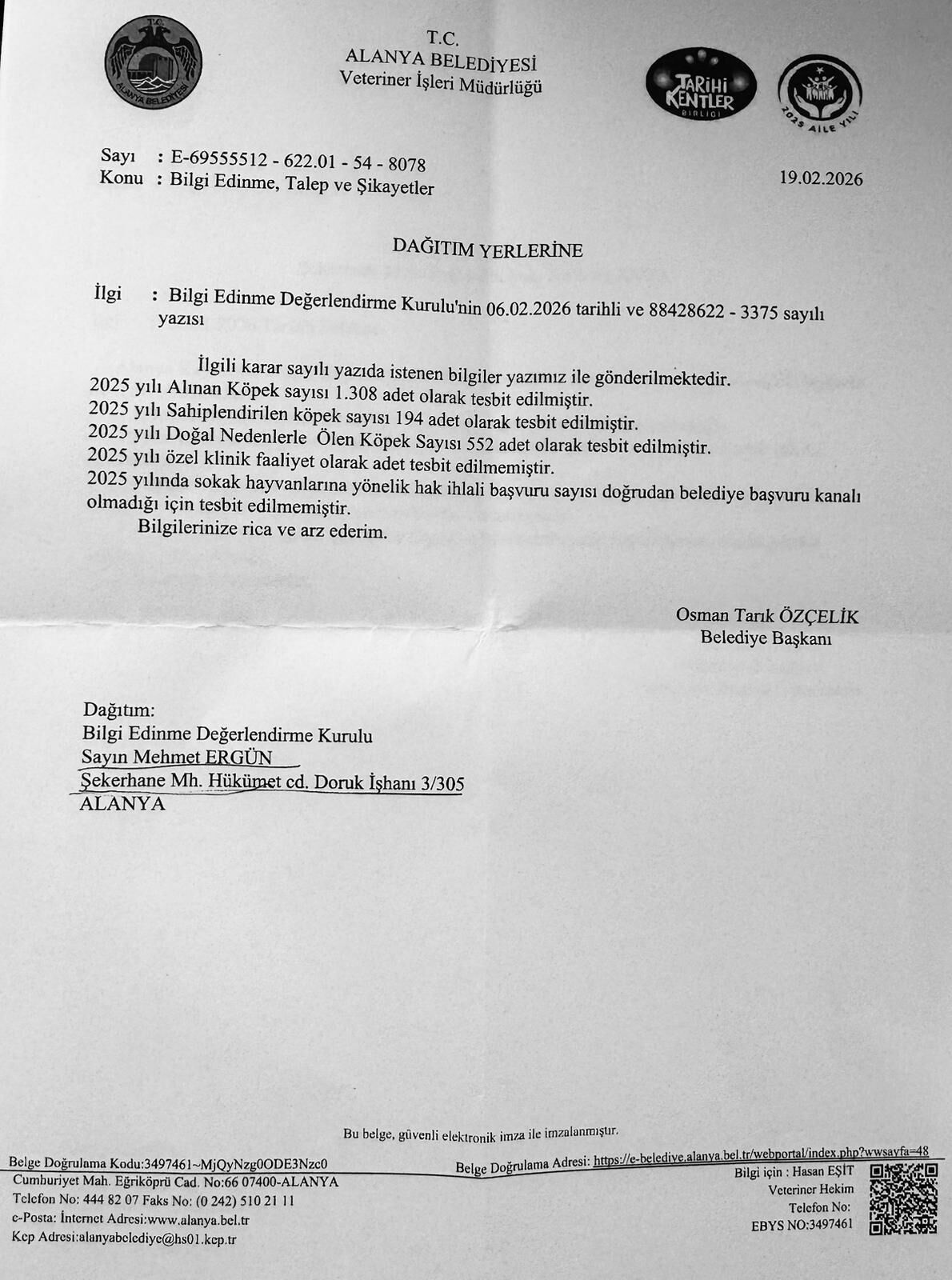 Alanya’da sokak hayvanlarının durumuyla ilgili sivil toplum kuruluşlarının ısrarlı takibi, çarpıcı bir gerçeği gün yüzüne çıkardı. Alanya Belediyesi’nden şeffaf bilgi alamadıkları gerekçesiyle üst makamlara başvuran Toplumsal Yaşam ve Eşitlik Derneği, barınaktaki köpek ölümlerine dair 2025 yılı resmi verilerini kamuoyuyla paylaştı. Dernek Başkanı Vildan Yazar Ülgenoğlu tarafından açıklanan verilere göre; bir yıl içerisinde barınağa toplam bin 308 köpek alınırken, bunlardan sadece 194’ü sahiplendirildi. Ancak asıl infial yaratan veri, 552 köpeğin "doğal nedenlerle" öldüğünün bildirilmesi oldu.