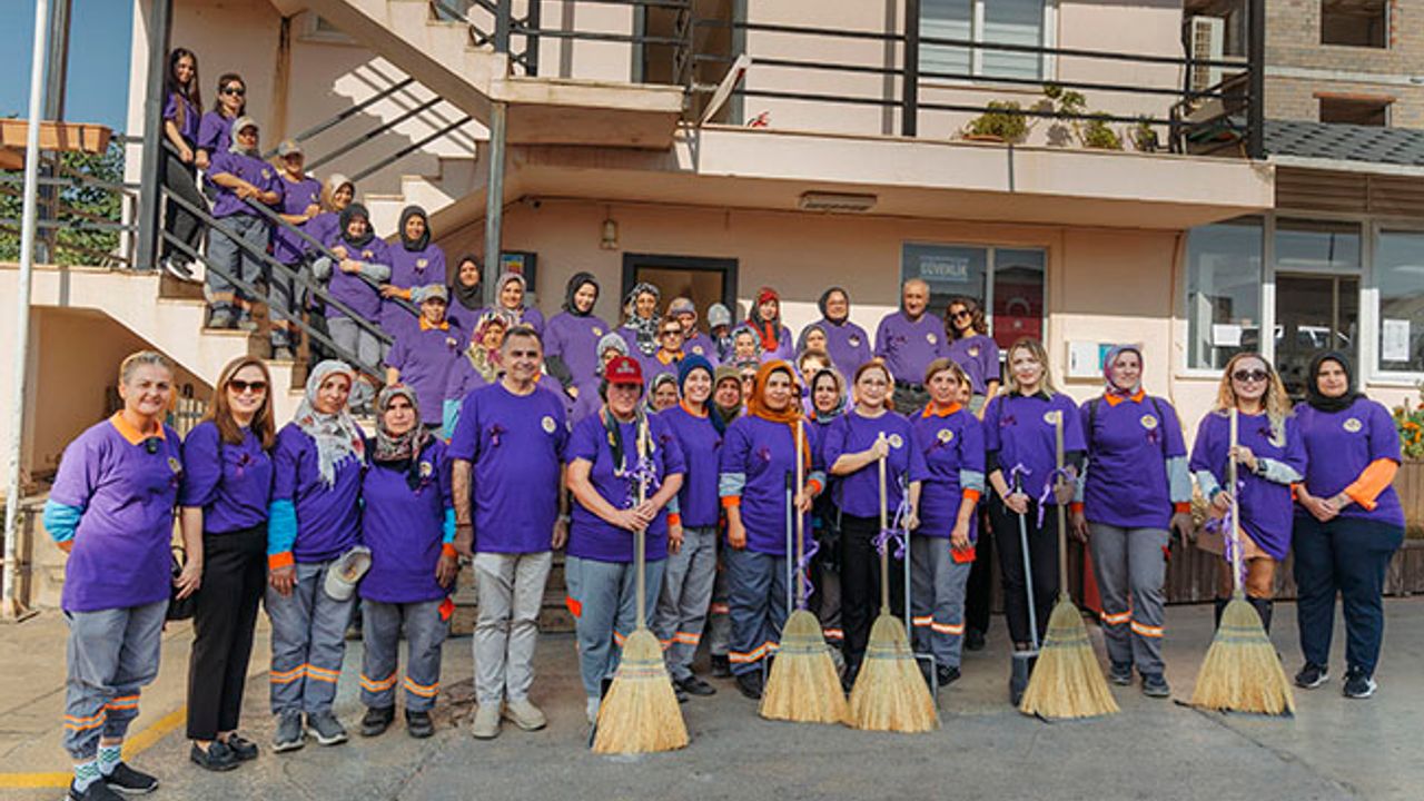 Alanya Belediyesi Temizlik İşleri Müdürlüğü, 25 Kasım Kadına Yönelik Şiddete Karşı Uluslararası Mücadele Günü kapsamında kadın personellerin katılımıyla farkındalık etkinliği gerçekleştirdi. 'Mor Umutla Temiz Bir Alanya' sloganıyla düzenlenen etkinlikte hem şehir temizliği yapıldı hem de şiddete karşı toplumsal bilinç vurgulandı. Etkinlik, kadın çalışanların kendi hazırladıkları kurdeleleri baskılı tişörtlerine takmasıyla başladı. Balonlarla süslenen araçlarla oluşturulan konvoy hareketinin ardından ekipler şantiyede bir araya gelerek beyaz duvara mor eldivenlerle guaj boya kullanarak el izi bıraktı. Bu bölümde 'Birlikten güç doğar, kadın varsa umut hep var' mesajı verildi. Programın devamında Cikcilli terasında kadın personel birlikte orman temizliği yaptı. Toplanan çöpler bir araya getirilerek toplu fotoğraf çekimi gerçekleştirildi. Etkinlik, 'Bu topladığımız her çöp, şiddetten temizlenmiş bir geleceğe umut olsun' mesajıyla tamamlandı.