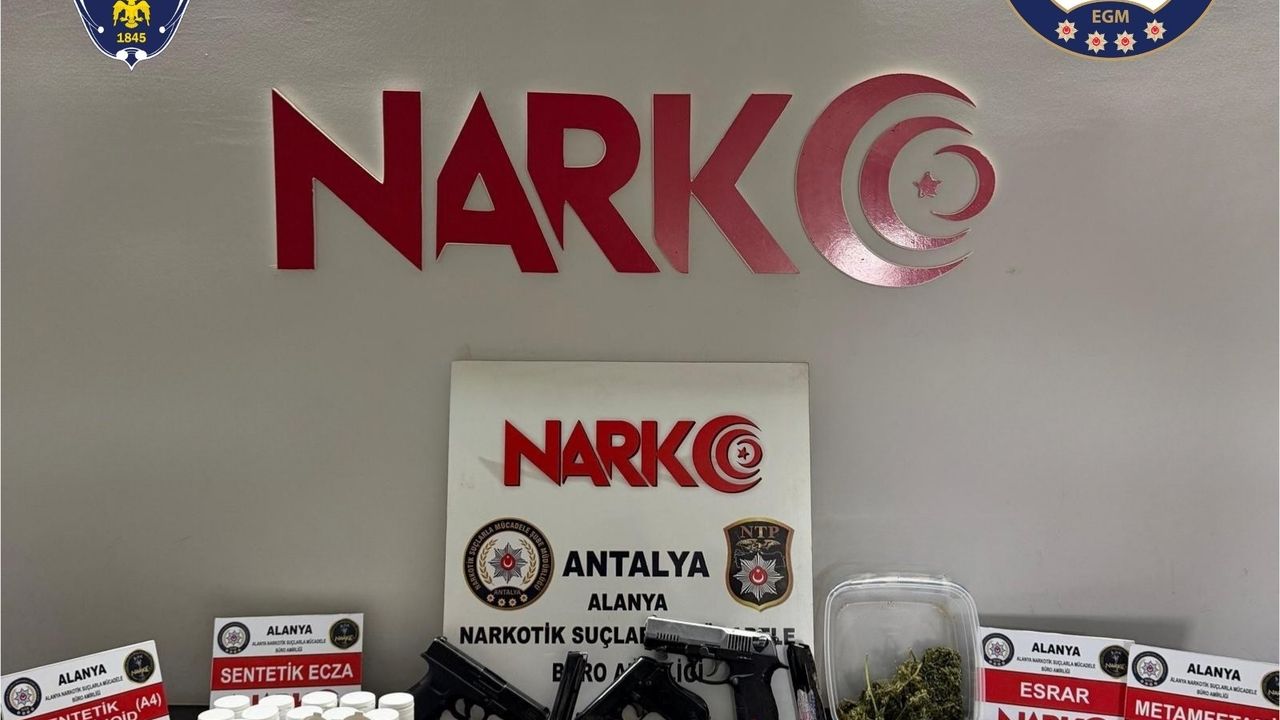 Antalya Emniyet Müdürlüğü Narkotik Suçlarla Mücadele Şube Müdürlüğü tarafından il genelinde uyuşturucu maddelerin kaynağının kurutulması, ticaretinin ve kullanımının engellenmesi amacıyla yürütülen çalışmalarda Alanya ilçesinde tespit edilen 45 adrese yönelik, 50 ekip, 190 personel ve 2 Narkotik Madde Arama Köpeği (NMAK) ile eş zamanlı operasyon gerçekleştirildi.