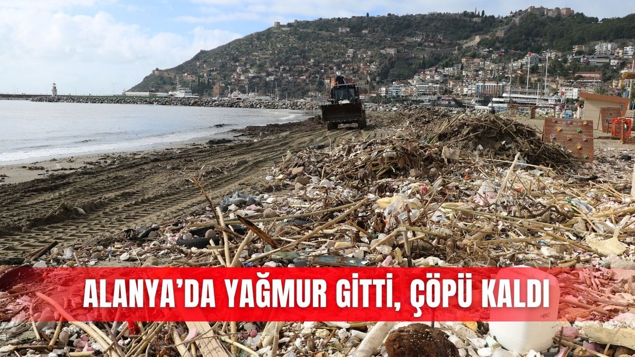 Alanya'da son iki gündür etkili olan şiddetli yağış, yaşamı olumsuz etkilemesinin yanı sıra, çevre alarmını da beraberinde getirdi. Kentin birçok noktasında denizden kıyıya, çöp, odun parçaları, plastikler ve evsel atıklar taşındı. Sabah saatlerinde özellikle Galip Dere Plajı, metrelerce uzanan çöp yığınlarıyla doldu. Atıkların büyük bölümünün derelerle taşındığı, bir kısmının ise deniz dibinde biriken atıkların dev dalgalar nedeniyle karaya vurduğu görüldü.