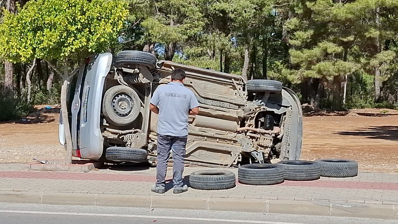 Kaza, Sarılar Mahallesi Sarılar Caddesi'nde meydana geldi. Edinilen bilgiye göre, Fatma K. yönetimindeki 07 AGU 256 plakalı hafif ticari araç, Manavgat istikametinden Sarılar yönünde seyir halindeyken sürücüsünün direksiyon hakimiyetini kaybetmesi sonucu aynı yönde ilerleyen Ramazan K.'nın kullandığı 07 ANH 597 plakalı otomobile çarptı. Çarpmanın etkisiyle savrulan araç kaldırıma çarpıp devrildi.