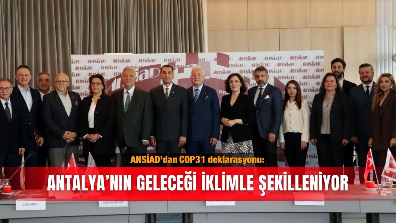 ANSİAD İklim Değişikliği ve Çevre Çalışma Masası Başkanı Cem Arüv'ün okuduğu bildiride, 2026 yılında Antalya'da düzenlenecek COP31'in yalnızca küresel bir toplantı olmadığı, Antalya ve Türkiye'nin geleceğini şekillendirecek tarihi bir fırsat olarak görüldüğü ifade edilirken, organizasyonun Antalya'yı iklim direnci yüksek, sürdürülebilir kalkınmayı önceleyen ve yeşil dönüşümü hızlandıran bir kent haline getirebileceği vurgulandı. Arüv, "COP31 küresel bir toplantının ötesinde, Antalya'nın ve ülkemizin sorumluluk bilincini kamuoyuyla paylaşıyoruz" dedi.
