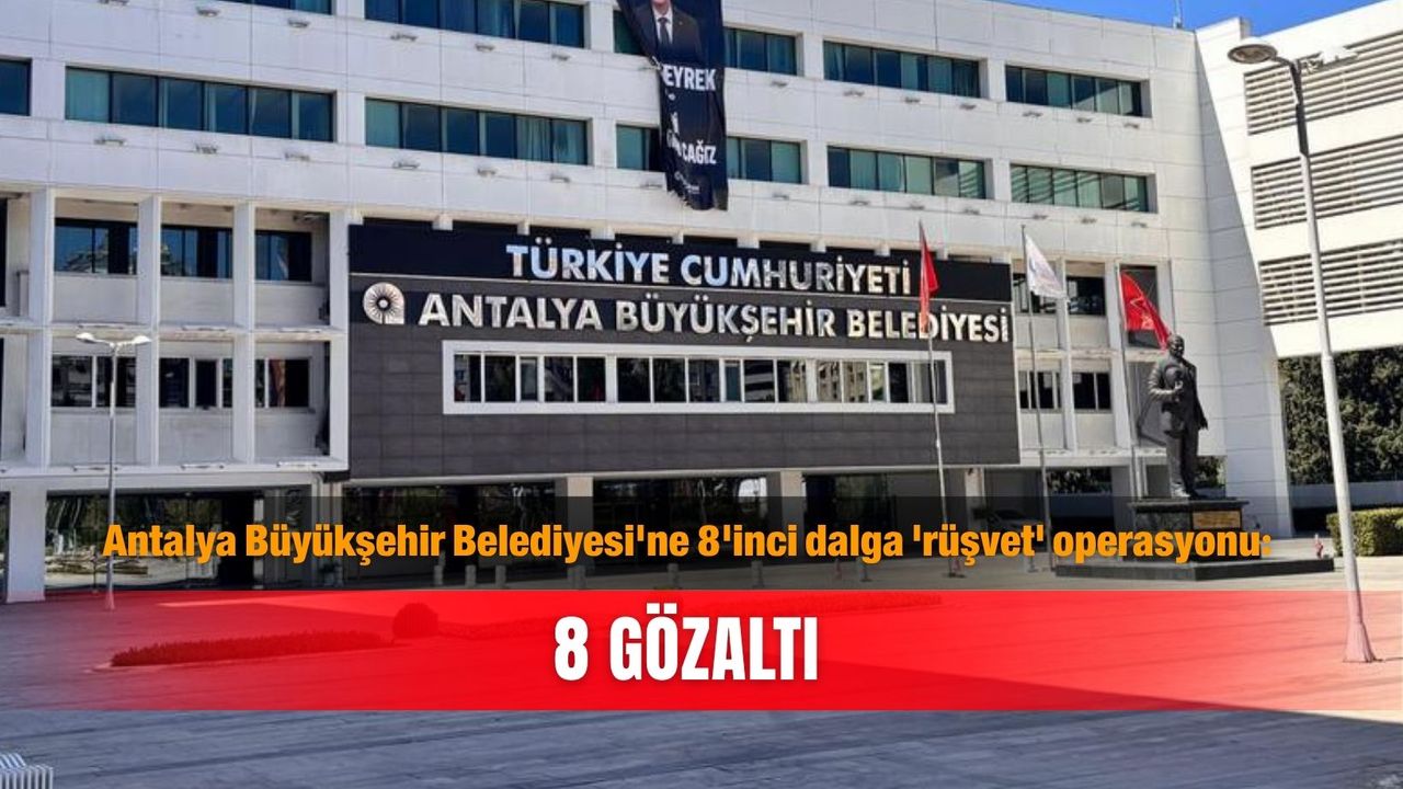 Antalya Cumhuriyet Başsavcılığı tarafından Antalya Büyükşehir Belediyesi'ne yönelik 8'inci dalga operasyonda, 8 kişi hakkında gözaltı kararı verildi. 'Rüşvet' ve 'Suçtan kaynaklı mal varlığı değerlerini aklama' ile suçlanan şüphelilerin, kuyumcu U.K.Y., galericiler A.A., H.T.A. ve H.A., Antalya Büyükşehir Belediyesi Özel Kalem Müdürlüğü çalışanı Y.Y., iş insanı B.G., inşaat mühendisi A.E., belediye çalışanı B.G. olduğu kaydedildi. 8 şüphelinin, Muhittin Böcek ve Mustafa Gökhan Böcek'e taşınır ve taşınmaz devri yaptığı ileri sürüldü.