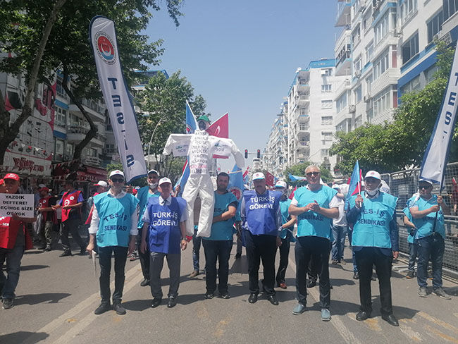 ‘Dünyanın büyük bir bölümünde emekçiler, 1 Mayıs’ı daha da ağırlaşan sorunlarla mücadele ederek karşılamaktadır’ diyen Cemil Ünal, “Yurdumuzda da durum çok farklı değildir. Bir yandan işsizlik korkusu diğer yandan geçim sıkıntısı yaşayarak emekçiler 1 Mayıs’ı karşıladı. Yurdumuzun en büyük ve en köklü işçi örgütü Türk-İş, başta üyeleri olmak üzere tüm emekçilerin hak ve çıkarlarını koruyup geliştirmek amacıyla 70 yıldan bu yana mücadele vermeye devam etmektedir. Emeğin dünyasının mevcut temel sorunları ve bunlara yönelik çözüm önerileri Türk-İş tarafından aşağıdaki tespitlerle ortaya konulmaktadır: Reel ücretlerin ve satın alma gücünün korunması ve artırılması sağlanmalıdır. Bunun için öncelikle enflasyon artışına yol açan olumsuz şartlar ortadan kaldırılmalı, koruyucu ve kapsayıcı ekonomik ve sosyal politikalar benimsenmelidir. Yabancı para birimleri karşısındaki TL’nin değer kaybının engellenmesi hem üretim hem de tüketim açısından zorunludur. Türkiye çokuluslu şirketlerin “ucuz emek deposu” değildir. Katma değeri yüksek mal ve hizmet üretimi, bir diğer ifadeyle “üretim üssü” haline gelmek nitelikli işgücünü, kapsamlı eğitim ve istihdam politikasını gerektirir. Böyle bir hedefi gerçekleştirmek için yapısal düzenlemeler yapılmalıdır. Nominal ücret artışları nedeniyle işçi çıkarma eğiliminde olan, karından zarar etmemek için emekçileri kapı önüne koyma eğilimi sergileyen işverenlere karşı, bir yandan mücadele yoğunlaştırılmalı, diğer yandan bu eğilime karşı yaptırımı öngören mevzuat düzenlemeleri yapılmalıdır.Salgınla beraber artan elektronik ticaret faaliyetlerinde çalışan emekçilerin çalışma koşulları son derece güvencesizdir” şeklinde konuştu.