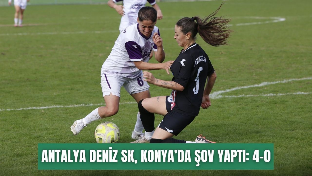 TFF Kadınlar 2. Ligi A Grubu’nun 12’nci hafta karşılaşmasında Antalya Deniz Kadın Spor Kulübü, deplasmanda Konya İdmanyurdu Spor ile karşı karşıya geldi. Konya İl hakemi Mehmet Ali Gülkara’nın yönettiği mücadele Şehit Muharrem Samur Stadı’nda oynandı. Grupta üst sıralardaki yerini sağlamlaştırmak isteyen Antalya temsilcisi, maç boyunca oyunun kontrolünü elinde tuttu. Savunmada disiplinli bir görüntü sergileyen, orta sahada oyunu doğru yönlendiren ve hücumda etkili organizasyonlar geliştiren Antalya Deniz, sahadan 4-0’lık net bir galibiyetle ayrıldı. Bu sonuçla puanını 22’ye yükselten Antalya ekibi, 3’üncü sıraya yerleşti. Henüz puanı bulunmayan Konya İdmanyurdu Spor ise 0 puanla son sırada kaldı.