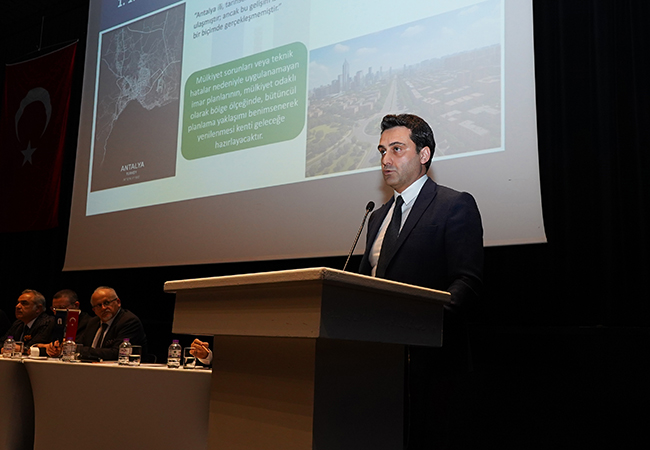 Raporun ilk bölümünü sunan Harita Mühendisi Okan Hançer, kentsel planlama ve yapılaşma sürecine ilişkin değerlendirmelerde bulundu. Hançer, “Antalya tarihsel süreç içinde gelişerek bugünlere ulaştı; ancak bu gelişim istenilen şekilde sağlıklı ve planlı gerçekleşmedi. Parsel bazlı değil, mahalle ve bölge ölçeğinde bütüncül planlama yaklaşımını benimsemek zorundayız" diye konuştu. Kent estetiğinin yalnızca görsel bir unsur olmadığını vurgulayan Hançer, “Kent estetiği yaşam kalitesi ve kimlik meselesidir. Çarpık yapılaşmış alanları planlı dönüşümle ele almalıyız" dedi. Afetlere dirençli kent vizyonunun acil gündemde olması gerektiğini belirten Hançer, “Çoklu afetler dönemindeyiz. Antalya'nın en öncelikli ve acil gündemi kentsel dönüşüm olmalıdır" dedi.