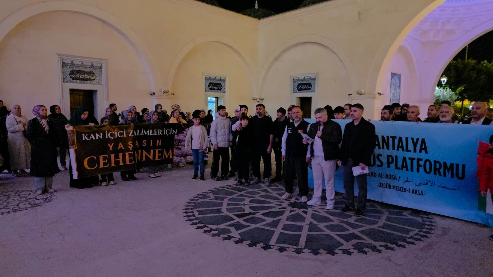 Antalya Kudüs Platformu tarafından Çelebi Sultan Mehmet Camii’nde düzenlenen programda vatandaşlar, cami önünde bir araya geldi. Platform adına basın açıklamasını gerçekleştiren Onur Ersoy, emperyalist güçlerin ve siyonist işgalcilerin İslam beldelerine yönelik artan saldırılarına karşı tarihi bir uyarıda bulundu. Ersoy, özellikle son dönemde İran’a yönelik gerçekleştirilen hava saldırılarını ve sivil katliamları kınayarak, Müslümanların "vahdet" içerisinde hareket etmesi gerektiğini vurguladı.