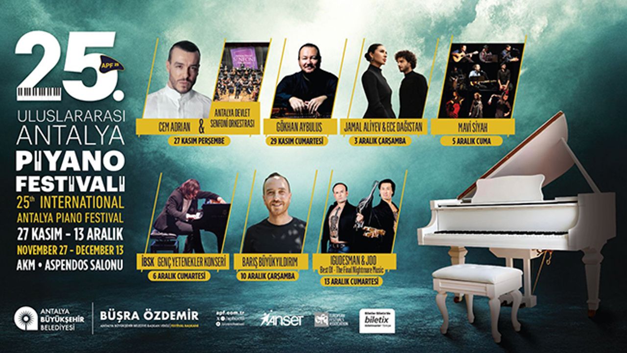 Türkiye'nin en önemli kültür-sanat etkinliklerinden biri olan Uluslararası Antalya Piyano Festivali, bu yıl 25'inci kez müzikseverle buluşacak. Piyano Festivali'nin açılışı 27 Kasım Perşembe günü Antalya Atatürk Kültür Merkezi (AKM) Aspendos Salonu'nda, Türk müziğinin güçlü seslerinden Cem Adrian ve Antalya Devlet Senfoni Orkestrası konseri ile gerçekleşecek.
