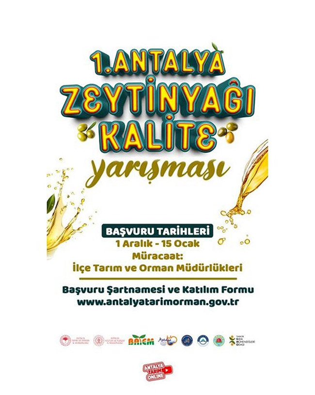 Antalya Tarım ve Orman Müdürlüğü, Antalya Ticaret Borsası, Antalya Kültür ve Turizm İl Müdürlüğü ve BATEM iş birliğiyle düzenlenen yarışma, üreticiyi teşvik etmeyi, bilgi ve bilinç düzeyini artırmayı, hatalı uygulamaları azaltmayı ve yüksek kaliteli zeytinyağı üretimini desteklemeyi hedefliyor.