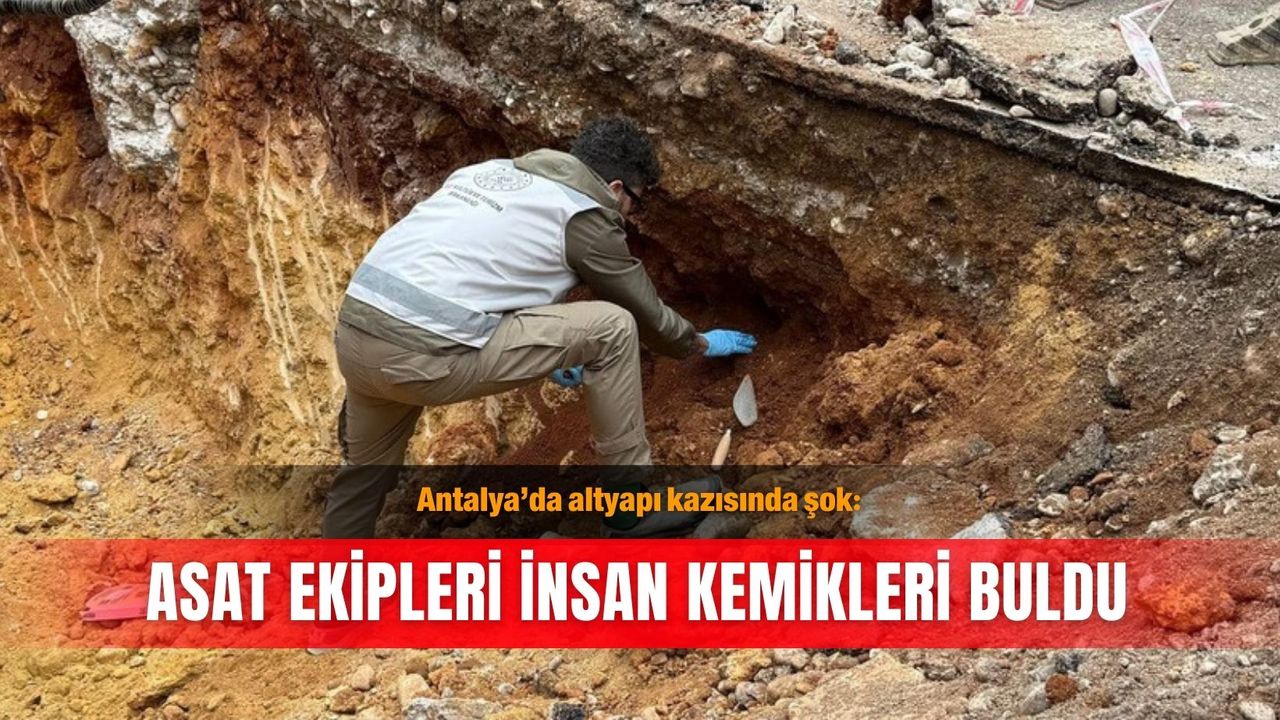 Muratpaşa ilçesi Kızılsaray Mahallesi 76 Sokak’ta ASAT ekipleri tarafından yürütülen kazı çalışması sırasında yoldan geçen bir kişi, toprak arasında kemik parçaları fark etti. Bu kişinin durumu kazı yapan ekiplere bildirmesi üzerine çalışmalar durduruldu ve 112 Acil Çağrı Merkezi'ne ihbarda bulunuldu. Gelen polis ekipleri, çevrede güvenlik önlemi alıp, sokağı yaya ve araç trafiğine kapattı. Olay yeri inceleme ekibi, kazı alanında yaptıkları ilk çalışmada, insana ait olduğu değerlendirilen kemik parçalarını toplayarak delil poşetlerine koydu. İl Kültür ve Turizm Müdürlüğü yetkilileri de bölgeye gelerek inceleme yaptı. İl Müdürlüğü görevlileri, kemiklerin tarihi bir kalıntı olma ihtimaline karşı kazı alanındaki toprakta detaylı çalışma gerçekleştirdi. Toplanan kemiklerin, incelenmek üzere Antalya Adli Tıp Kurumu'na gönderileceği öğrenildi.