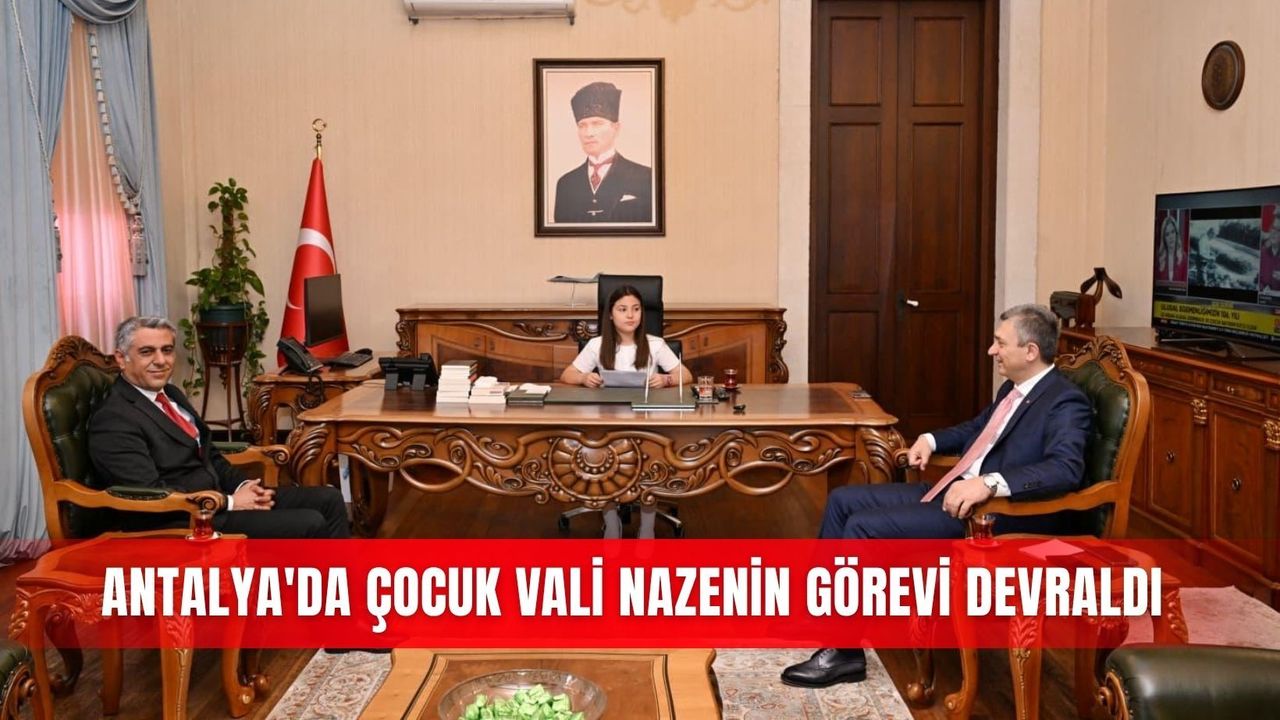 23 Nisan Ulusal Egemenlik ve Çocuk Bayramı dolayısıyla düzenlenen sembolik devir teslim töreninde, Hanım Ömer Çağıran İlkokulu öğrencisi Nazenin Karsavurdan, Antalya Valisi Hulusi Şahin’in makamını temsili olarak devraldı.