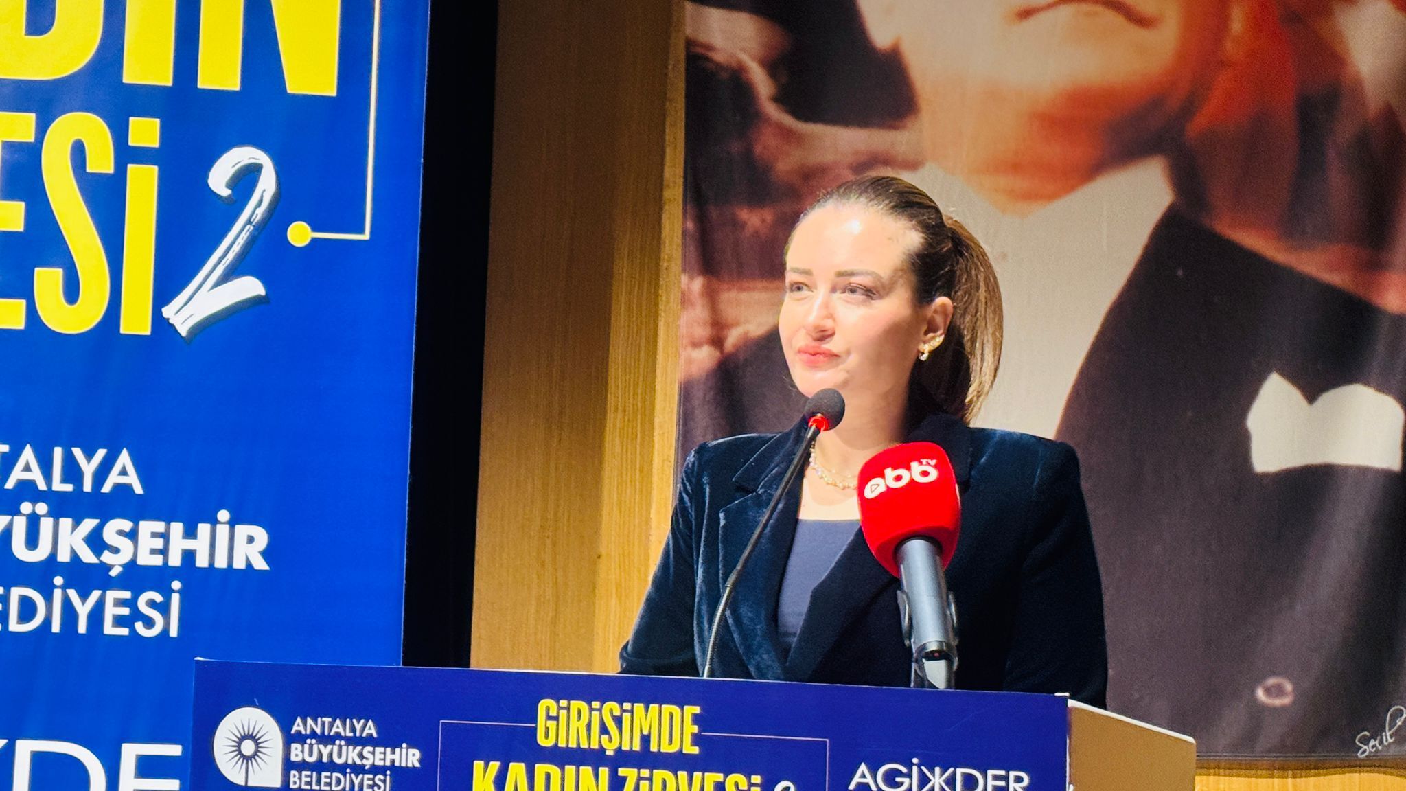 Zirvede konuşan Antalya Büyükşehir Belediyesi Başkan Vekili Büşra Özdemir, kadınların üretim ve ekonomideki rolünün toplumların gelişimi açısından büyük önem taşıdığını vurguladı. Özdemir, kadın emeğinin vizyonla büyüdüğü, hayallerin cesaretle buluştuğu bu tür organizasyonların büyük değer taşıdığını belirterek, “Kadınların gücünün geleceği şekillendirdiği bu anlamlı zirvede sizlerle bir arada olmaktan büyük mutluluk duyuyorum. Bu önemli organizasyonu hayata geçiren AGİDER’i yürekten kutluyor, kadın girişimciliğine açtıkları güçlü alan için teşekkür ediyorum” dedi. Kadınların ekonomik hayatta daha güçlü şekilde yer almasının toplumların kalkınmasında belirleyici rol oynadığını ifade eden Özdemir, kadın girişimciliğinin sadece bir işletme kurmak anlamına gelmediğini söyledi. Özdemir, “Kadın girişimci demek bir fikri ve cesareti gerçeğe dönüştürmek, aynı zamanda binlerce insanın hayatına dokunmak demektir. Bir kadın üretmeye başladığında yalnızca bir işletme büyümez; bir aile güçlenir, bir şehir gelişir ve bir ülkenin geleceği değişir” ifadelerini kullandı.