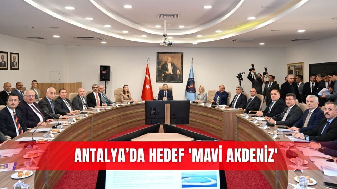 'Antalya Mavi Akdeniz İnisiyatifi Değerlendirme Toplantısı', Antalya Valisi Hulusi Şahin başkanlığında gerçekleştirildi. Toplantıda, Antalya kıyılarında deniz yüzeyi ve kıyı dip temizliğine yönelik kullanılacak yöntemler ve ekipmanlar, deniz kirliliğini kaynağında önlemek için yapılacak müdahaleler, dumansız sahil uygulaması, akarsularda bariyer uygulaması, atık alım gemisi kapasitesinin artırılması, tarımsal ve kimyasal atıklara karşı alınan tedbirler, geri dönüşüm altyapısı ve depozito sistemi ile toplumsal sahiplenme ve farkındalık çalışmaları ele alındı.