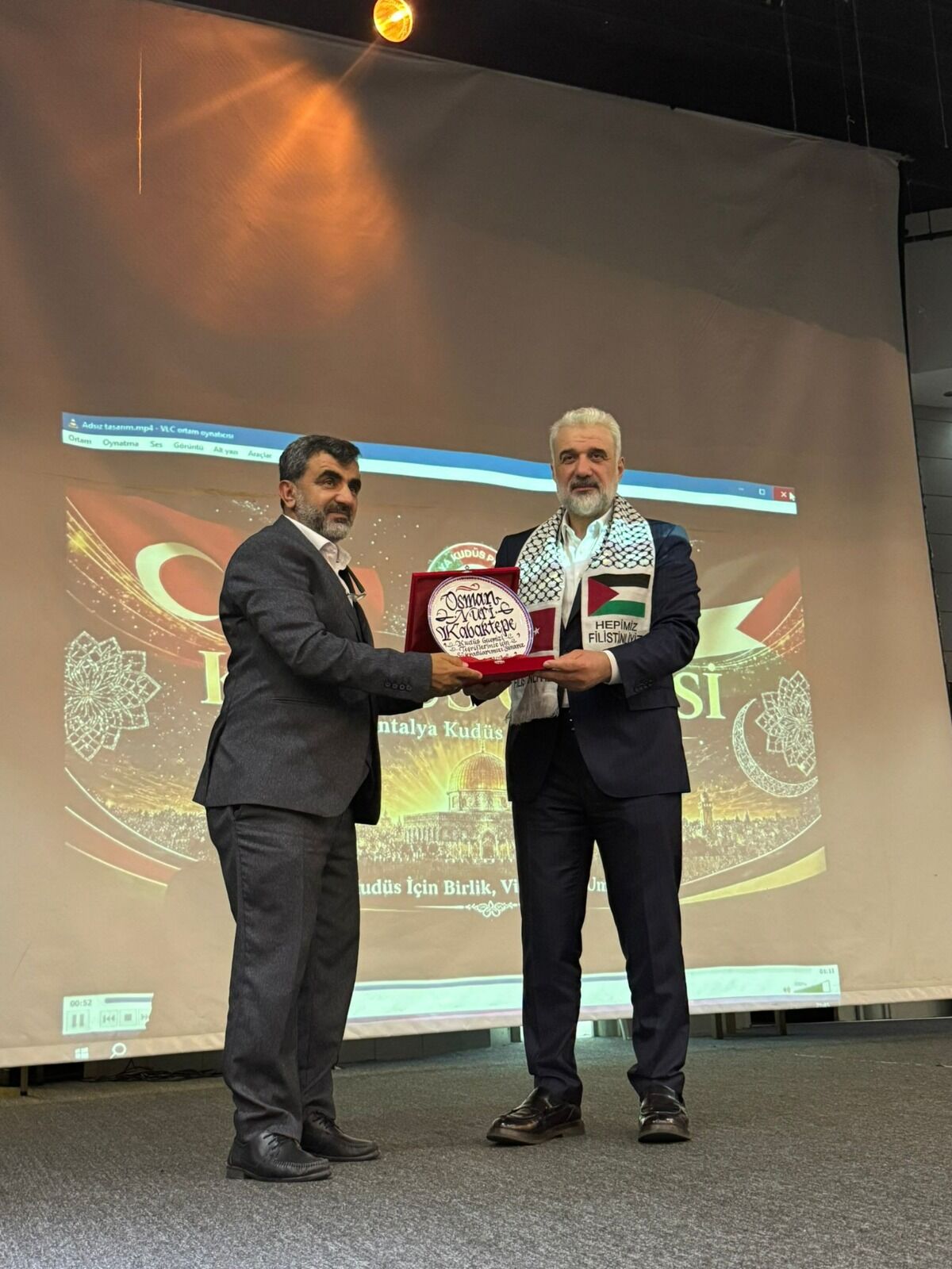 Antalya Kudüs Platformu tarafından düzenlenen ‘Kudüs Gecesi’, yoğun bir katılımla Hayme Ana Kız Anadolu İmam Hatip Lisesi’nde gerçekleştirildi. Filistin davasına olan desteği pekiştirmek ve gençlerde Kudüs bilincini canlı tutmak amacıyla düzenlenen gecede, duygu dolu anlar yaşandı. Programın açılış konuşmasını yapan Antalya Kudüs Platformu Başkanı Alpaslan Arslan, Kudüs’ün sadece Filistinlilerin değil, tüm İslam aleminin ve vicdan sahibi insanlığın ortak davası olduğunu vurguladı. Arslan, konuşmasında şu ifadelere yer verdi: "Bu gece burada sadece bir program için değil, bir emaneti hatırlamak ve bir davayı diri tutmak için toplandık. Kudüs bizim için herhangi bir şehir değildir; Peygamberlerin ayak izlerini taşıyan mübarek bir beldedir. Mescid-i Aksa mahzun kalmayacak, Filistin halkının onurlu direnişi tarihe altın harflerle yazılacaktır."