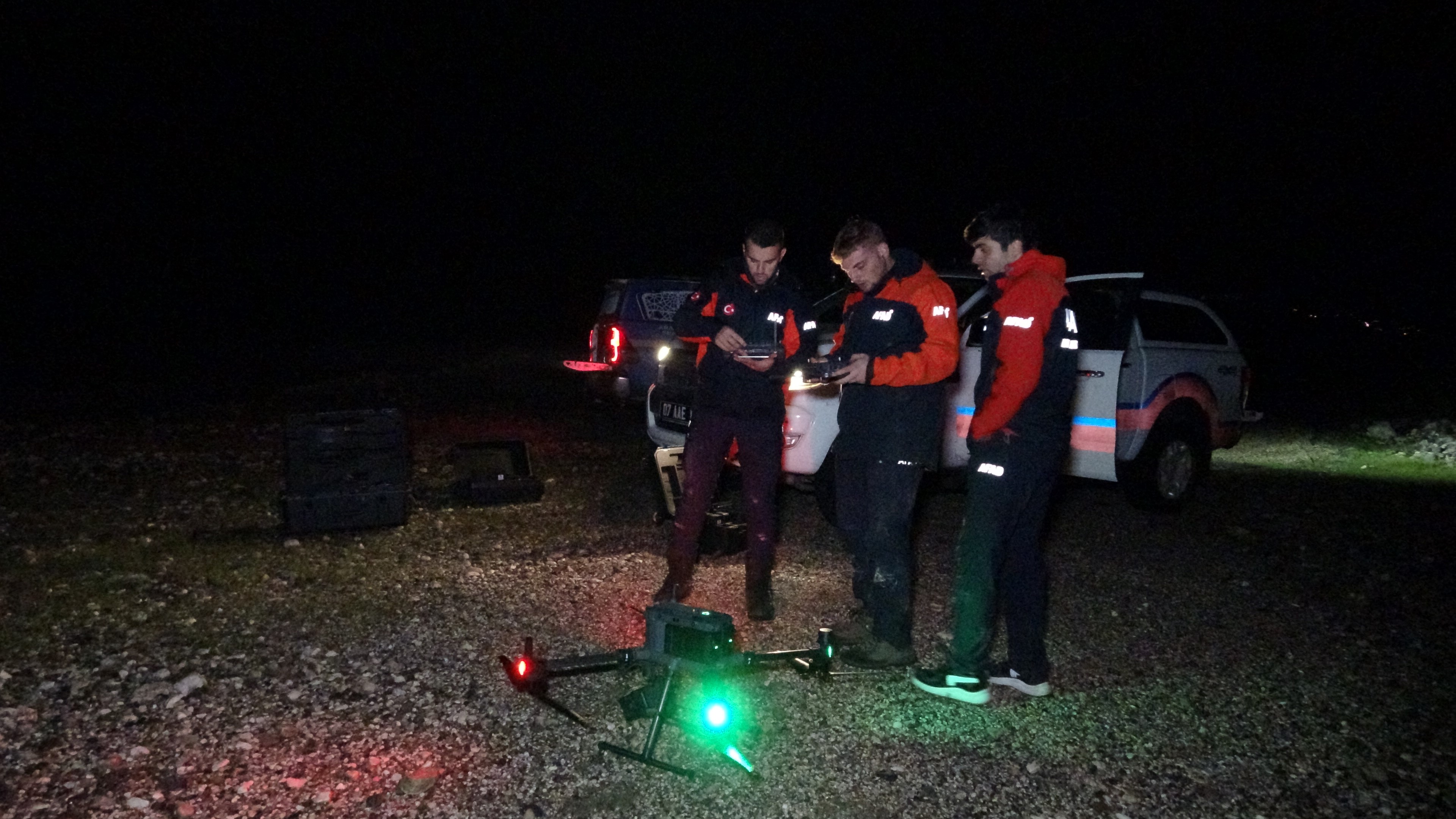 Aynı zamanda bölgede ikamet eden bir vatandaşın dağlık alanda bir kişiyi gördüğü ve el salladığı ihbarı üzerine bölgeye Jandarma Komando Arama Kurtarma timi (JAK) ve AFAD ekipleri sevk edildi. Verilen konuma gelen AFAD ekipleri ilk olarak termal ve kızılötesi kameralı dronlar ile bölgede arama yaptı. Yapılan aramada ilk olarak mahsur kalan gencin yeri tespit edildi. Kayaların arasında bir oyuğa sığındığı ve oldukça bitkin halde olduğu gözlenen genç, mahsur kaldığı yerden kurtarmak için gelen AFAD ekiplerinin gönderdiği drona el sallayarak mutluluğunu gösterdi.