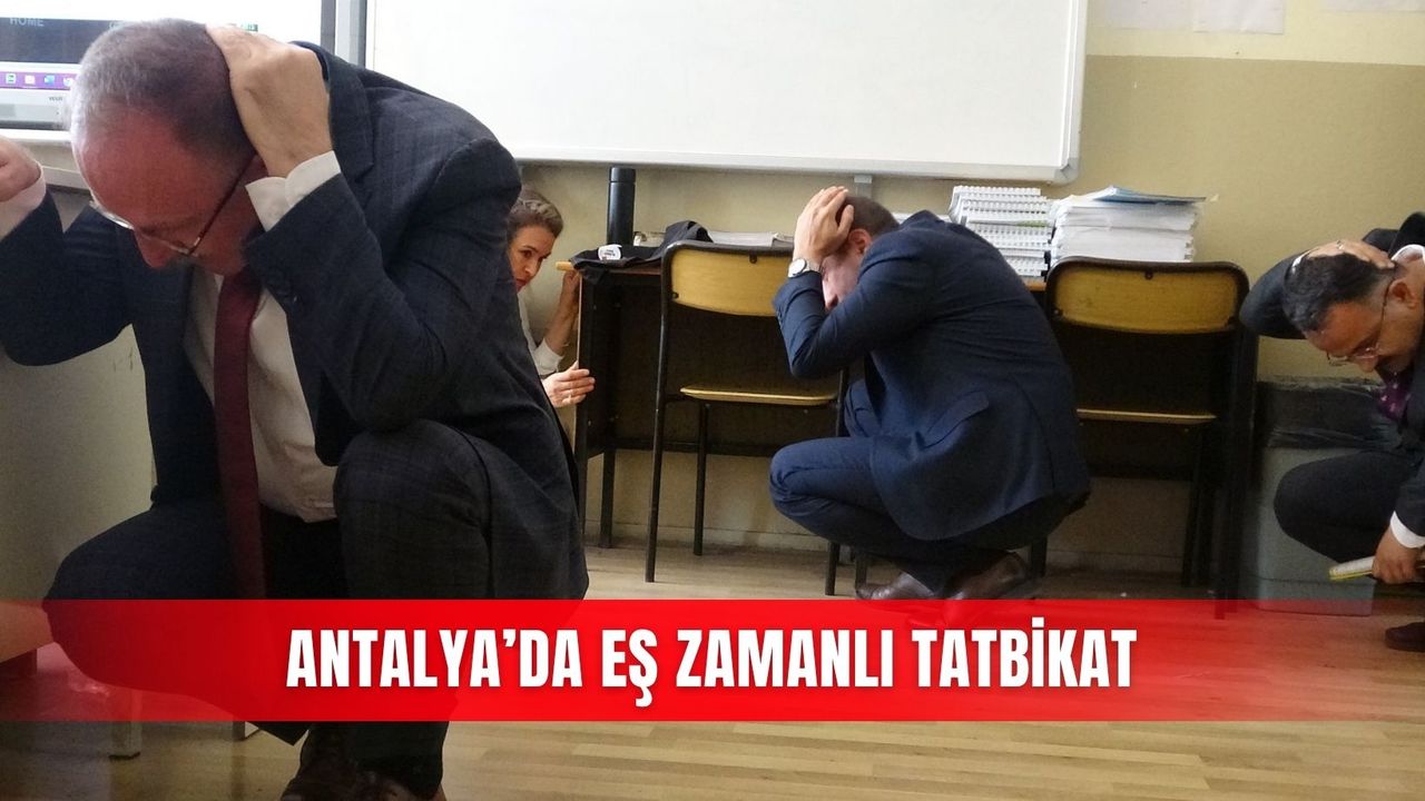 Antalya İl Milli Eğitim Müdürü Mehmet Yasin Eriş, sınıfları ziyareti sırasında çalan deprem alarmı ile öğrencilerle birlikte ‘Çök-Kapan-Tutun’ taktiği ile masaların altına girerek gerekli tedbiri aldı. Tatbikat gereği oluşturulan simülasyonda okulda görevli öğrenciler depremin sona ermesi ile birlikte okulun tahliyesi için tek tek sınıflara girerek öğrencileri yönlendirdi. Kısa sürede öğrencilerin okul başçesindne toplanmasının ardından sınıf öğretmenleri tarafından sayım yapılarak eksik ve yaralı öğrenci olup olmadığı kontrol edildi. Bu sırada deprem sırasında yaralan bir öğrenciyi temsil eden cansız manken görevli öğrenciler tarafından sedye ile taşınarak sağlık ekiplerine teslim edildi.
