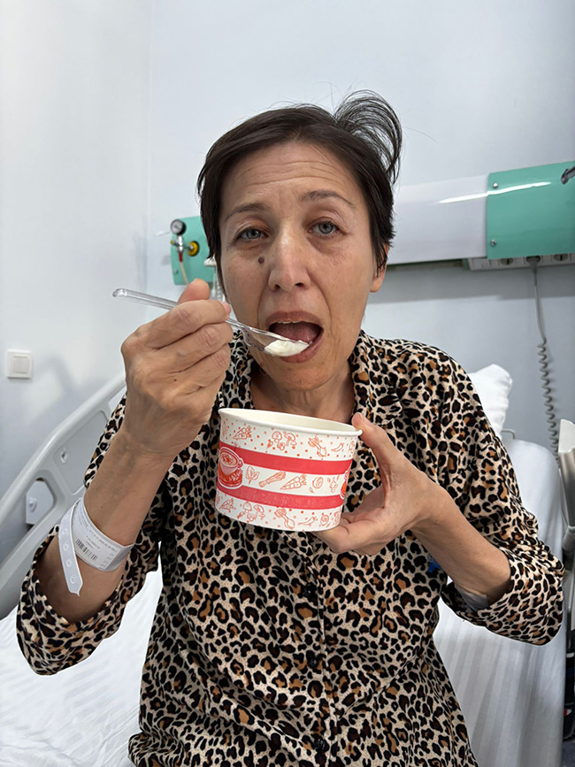 Gülistan Kaygısızlar, kendisini sağlığına kavuşturan Prof. Dr. Tuğrul Çakır'a dua etti. İki yıl önce yemek borusunda tümör nedeniyle geçirdiği ameliyat sonrası belirli bir diyet uygulandığını aktaran Kaygısızlar, ameliyatın ardından kendisine, ‘Yeter ki ye, kus sonra. Bu normal. Ağır bir ameliyat geçirdin. Süreç uzun. Kusmalar normal’ denildiğini belirterek, “Yemek borusu ameliyatından sonra küçük lokmayı çok çiğnemem, çok ağır yemem gerekiyordu. Ben hızlı yemek yiyen biriydim. Yeniden yemek yemeyi öğreniyordum sanki. Bu ağrı ve kusmalarımı önce buna bağlıyordum" dedi.