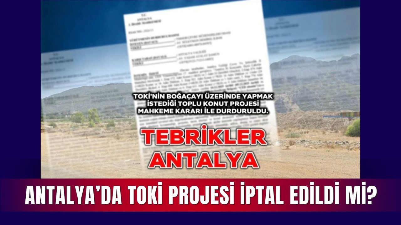 CHP Antalya İl Başkanı Nail Kamacı, sosyal medya hesabından yaptığı açıklamada, Toplu Konut İdaresi’nin (TOKİ) Konyaaltı ilçesi Çakırlar bölgesinde hayata geçirmeyi planladığı toplu konut projesinin yargı kararıyla durdurulduğunu ifade etti.