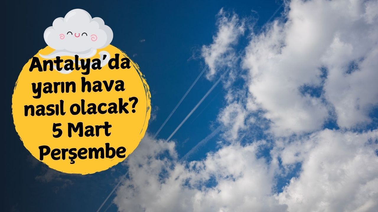 Antalya genelinde 5 Mart Perşembe günü parçalı bulutlu bir gökyüzü hakim olacak. Çarşamba günkü 23-24 derecelik sıcaklıkların ardından termometrelerde birkaç derecelik düşüş gözlenirken, iç kesimlerde sis ve pus etkisini gösterecek.