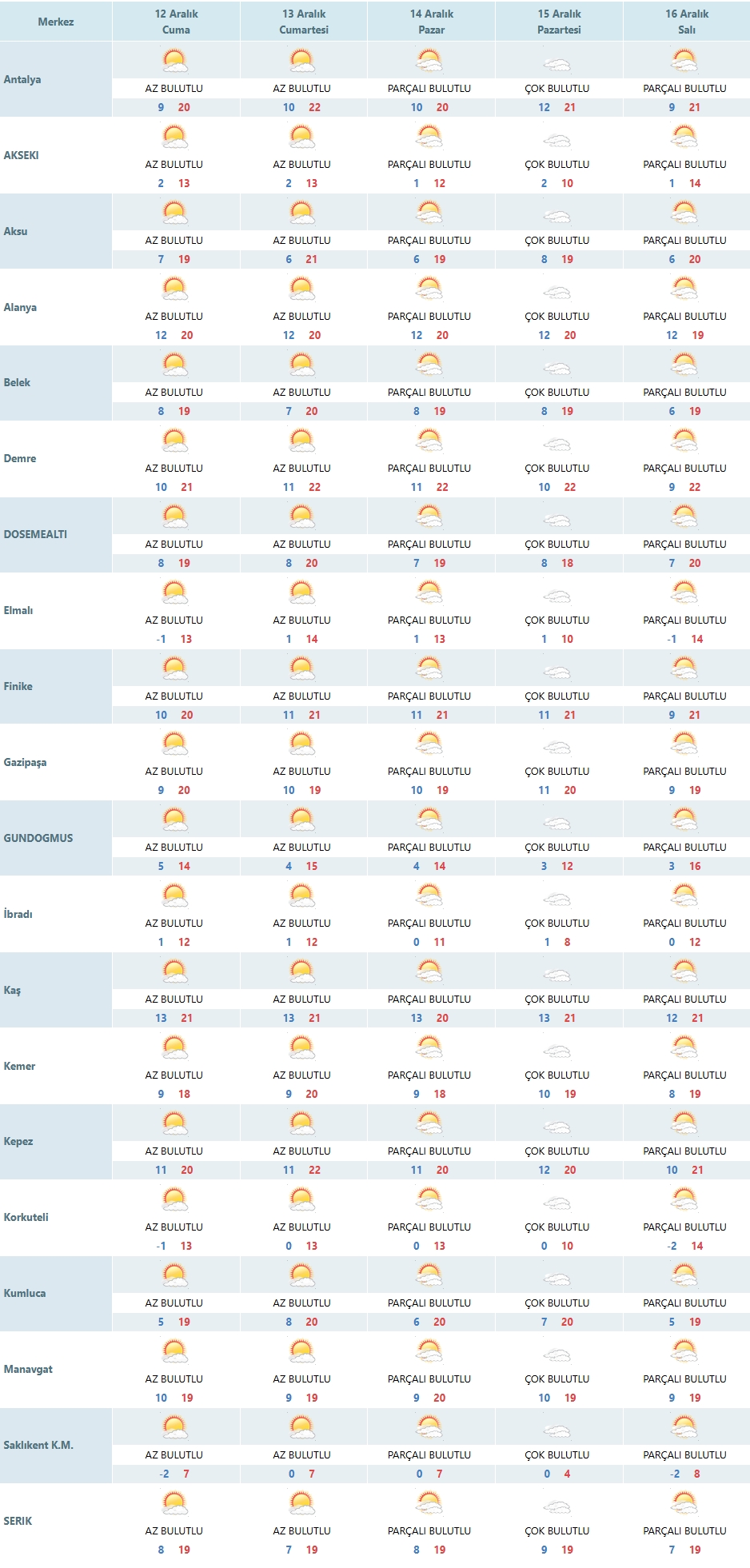 Serik: 8–19 derece