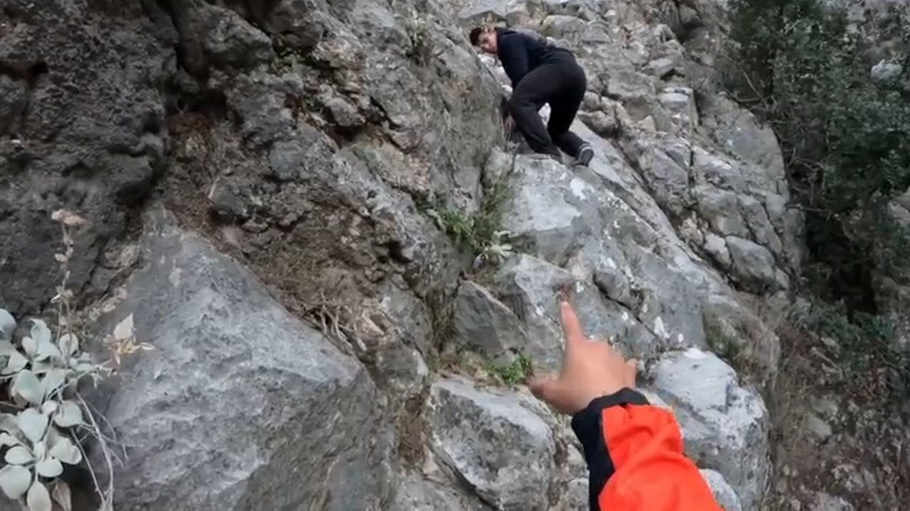 Olay, dün saat 18.00 sıralarında Konyaaltı ilçesi Çağlarca Mahallesi'nde meydana geldi. Arapuçtu dağına yürüyüşe çıkan Gökhan D. ve arkadaşı Abdullah D., zirveye ulaştıktan sonra inişe geçti. İki arkadaş sarp ve engebeli arazide mahsur kalınca durumu 112 Acil Çağrı Merkezi'ne bildirdi. İhbarla olay yerine AFAD ve jandarma ekipleri sevk edildi. Durumlarının iyi olduğunu belirten Gökhan D. ve Abdullah D.'nin bulunduğu yeri belirleyen ekipler gençlerin yanına gitmeye başladı. Kısa sürede gençlere ulaşan ekipler, kurtarma çalışmalarına başladı. AFAD ekibi, yaklaşık 1 saatlik çalışmayla gençleri mahsur kaldığı yerden kurtararak jandarma ekiplerine teslim etti. Gökhan D. ve arkadaşı Abdullah D.'nin kurtarılma anı ise ekiplerin kask kamerasıyla kaydedildi.