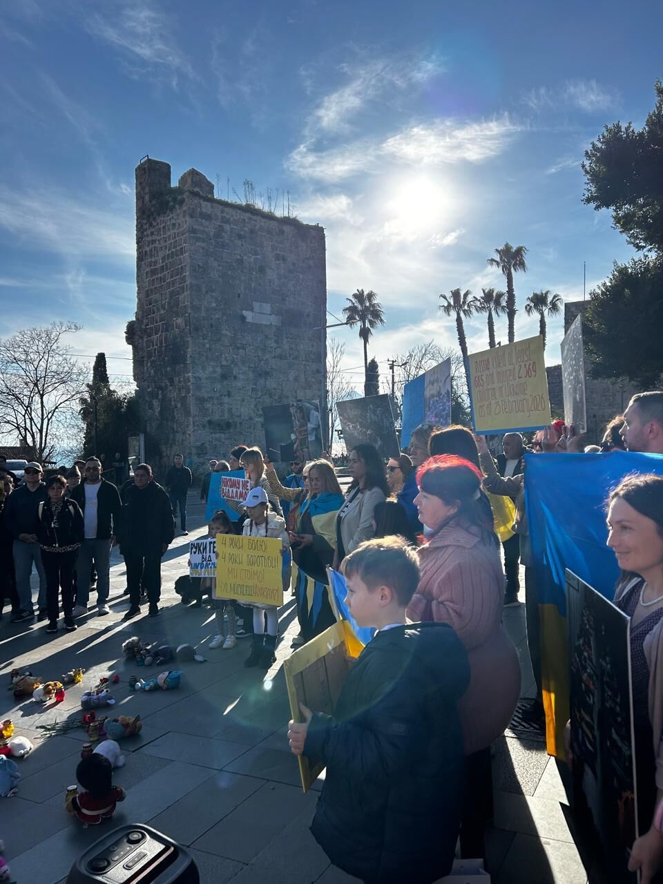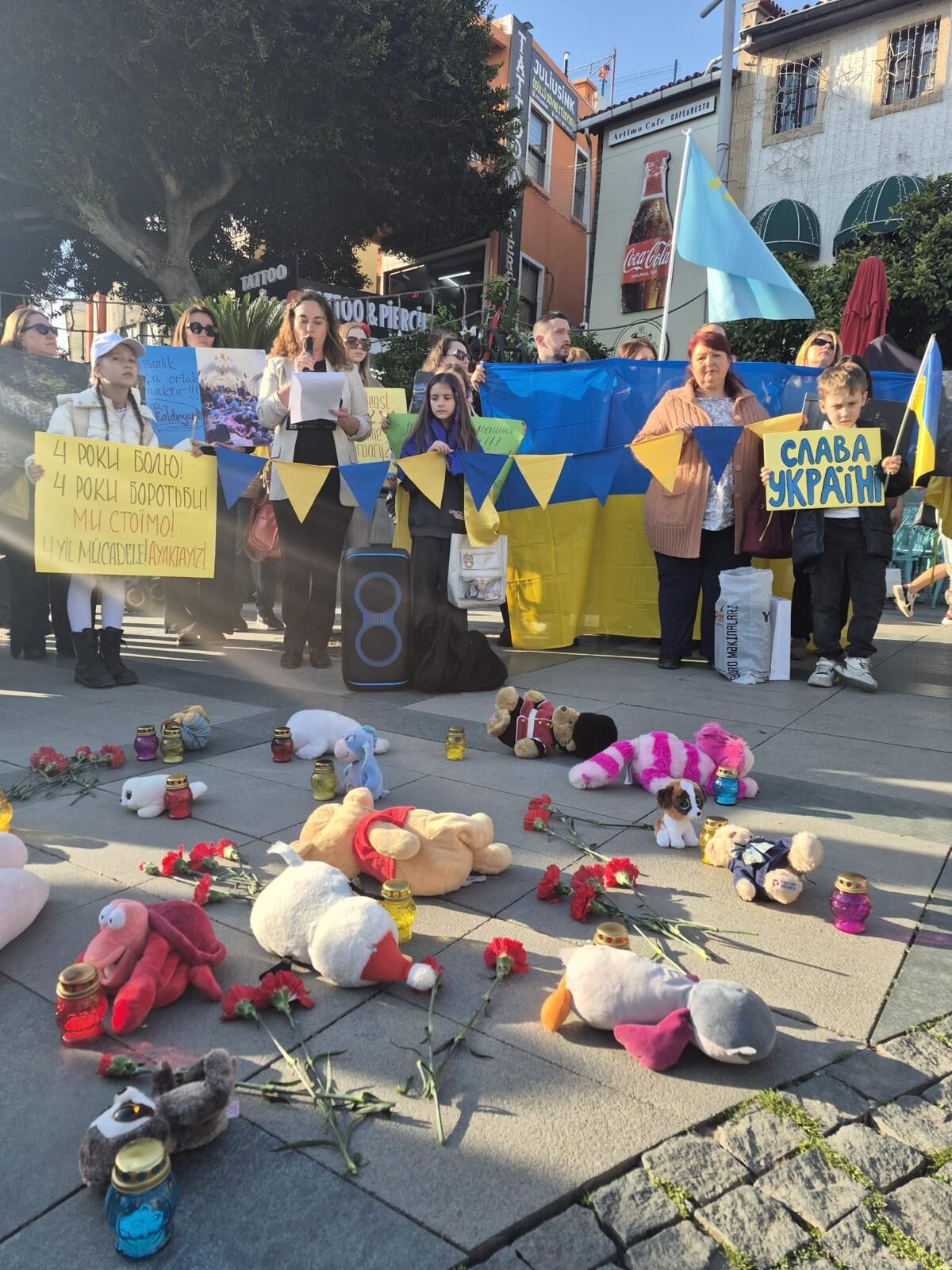 24 Şubat’ın yıl dönümünde Antalya, Ukrayna halkının özgürlük mücadelesine ve kayıplarına sahne oldu. Gün boyu süren etkinlikler kapsamında önce Ukrayna Kültür Parkı’nda bir anma töreni, ardından şehir merkezindeki tarihi Saat Kulesi önünde geniş katılımlı bir miting gerçekleştirildi. Günün ilk töreni Ukrayna Kültür Parkı’ndaki Taras Şevçenko kabartması önünde yapıldı. Ukrayna Ailesi Derneği tarafından organize edilen etkinlikte, savaşta hayatını kaybeden çocuklar anısına hazırlanan ve oyuncaklar ile mumlardan oluşan sembolik sergi katılımcılara duygusal anlar yaşattı.