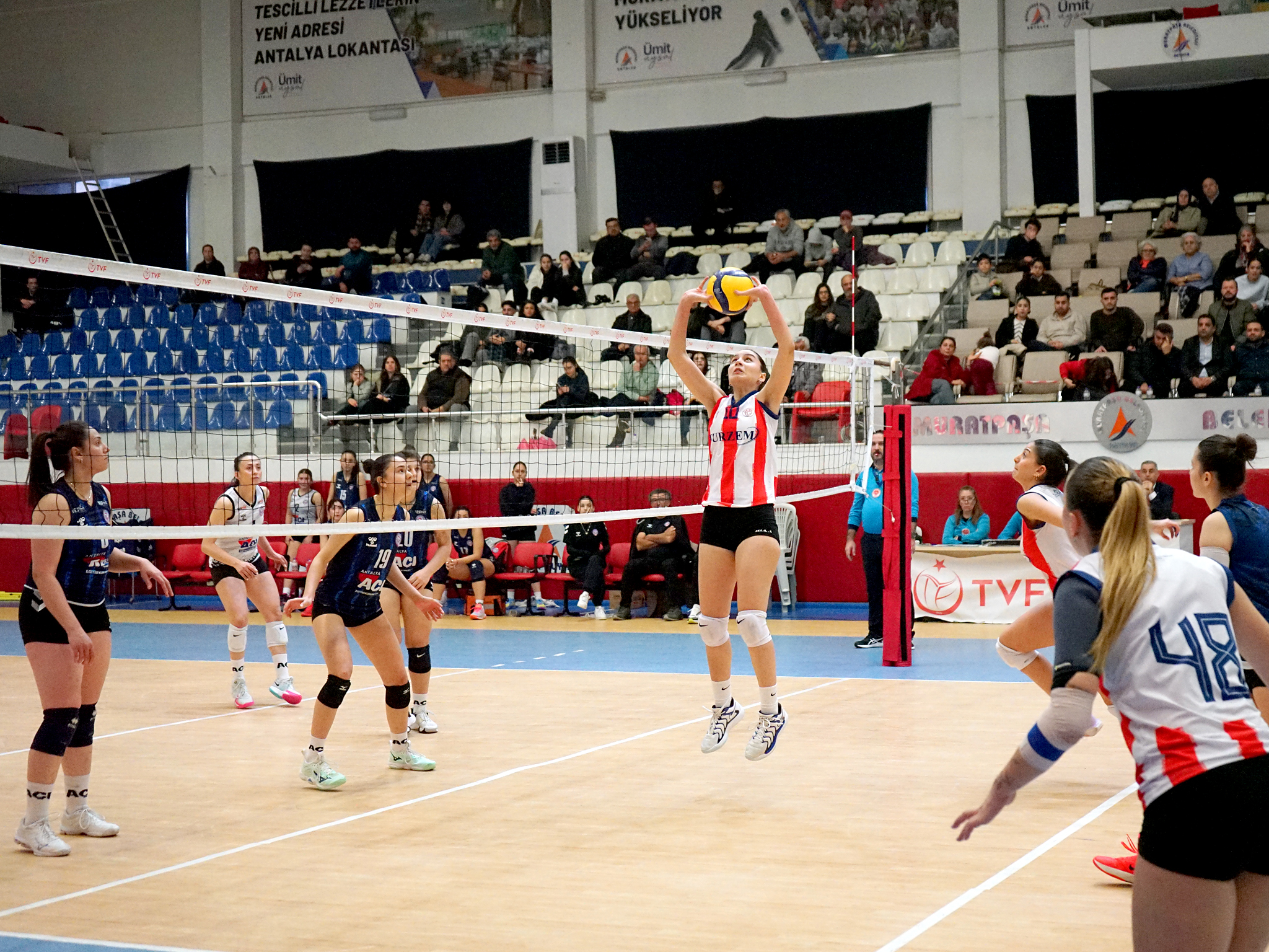 TVF Kadınlar 2. Lig 8. Grup’ta mücadele eden Antalyaspor Kadın Voleybol Takımı, 2025-2026 sezonunun 22. ve son haftasında Muratpaşa Süleyman Evcilmen Spor Salonu’nda karşılaştığı Açı Koleji Spor Kulübü’nü 19-25, 16-25 ve 21-25’lik setler sonucunda 3-0 mağlup ederek sezonu galibiyetle noktaladı. Saat 13.00’te başlayan karşılaşmayı Antalyaspor Kulübü Başkanı Mustafa Ergün ile birlikte yönetim kurulu üyeleri Osman Yıldız, Mert Sındıraç ve Mustafa Öztürk tribünden takip ederken, kırmızı beyazlı taraftarlar da sezonun son maçında takımlarını yalnız bırakmadı. Bu sonuçla ligdeki galibiyet sayısını 13’e, puanını ise 41’e yükselten Filenin Akrepleri, 22 maçlık sezonu 4. sırada tamamladı. Antalyasporlu voleybolcular, elde edilen bu anlamlı galibiyeti ise tedavisi hastanede devam eden takım arkadaşları Ümmünez Karaöz’e armağan etti.
