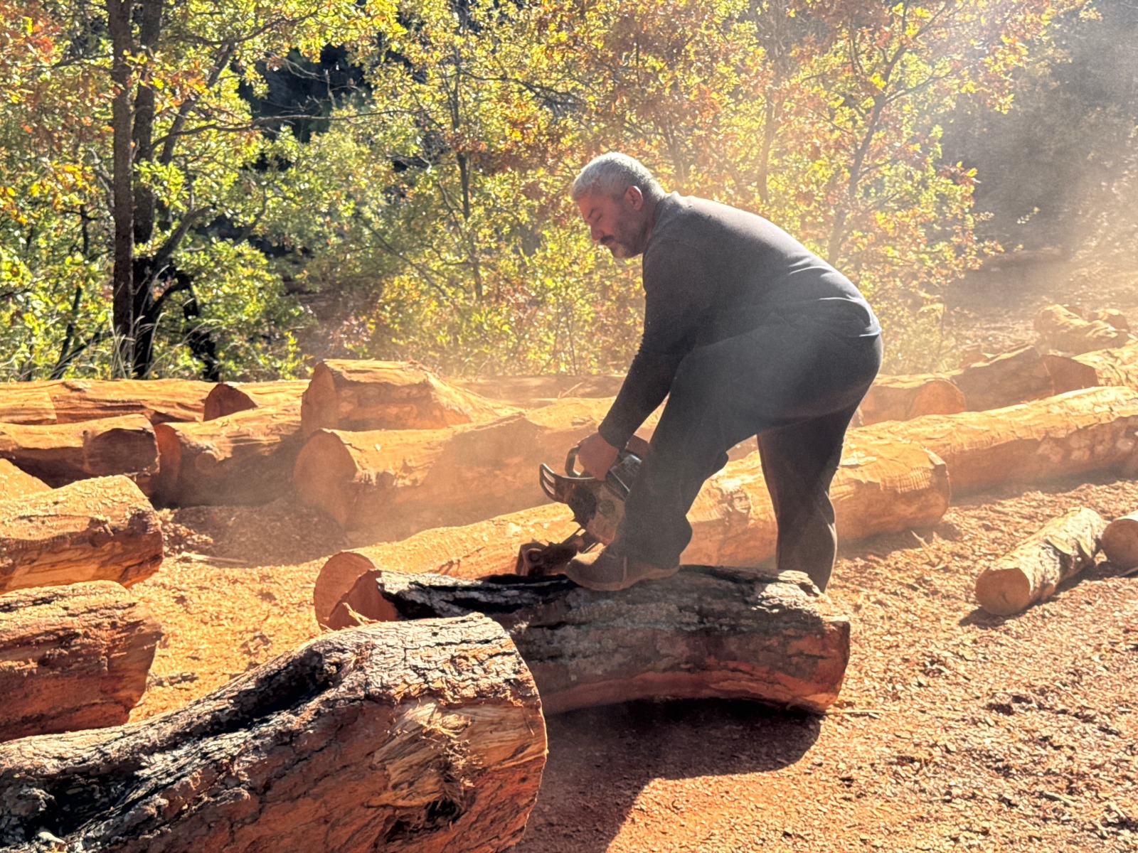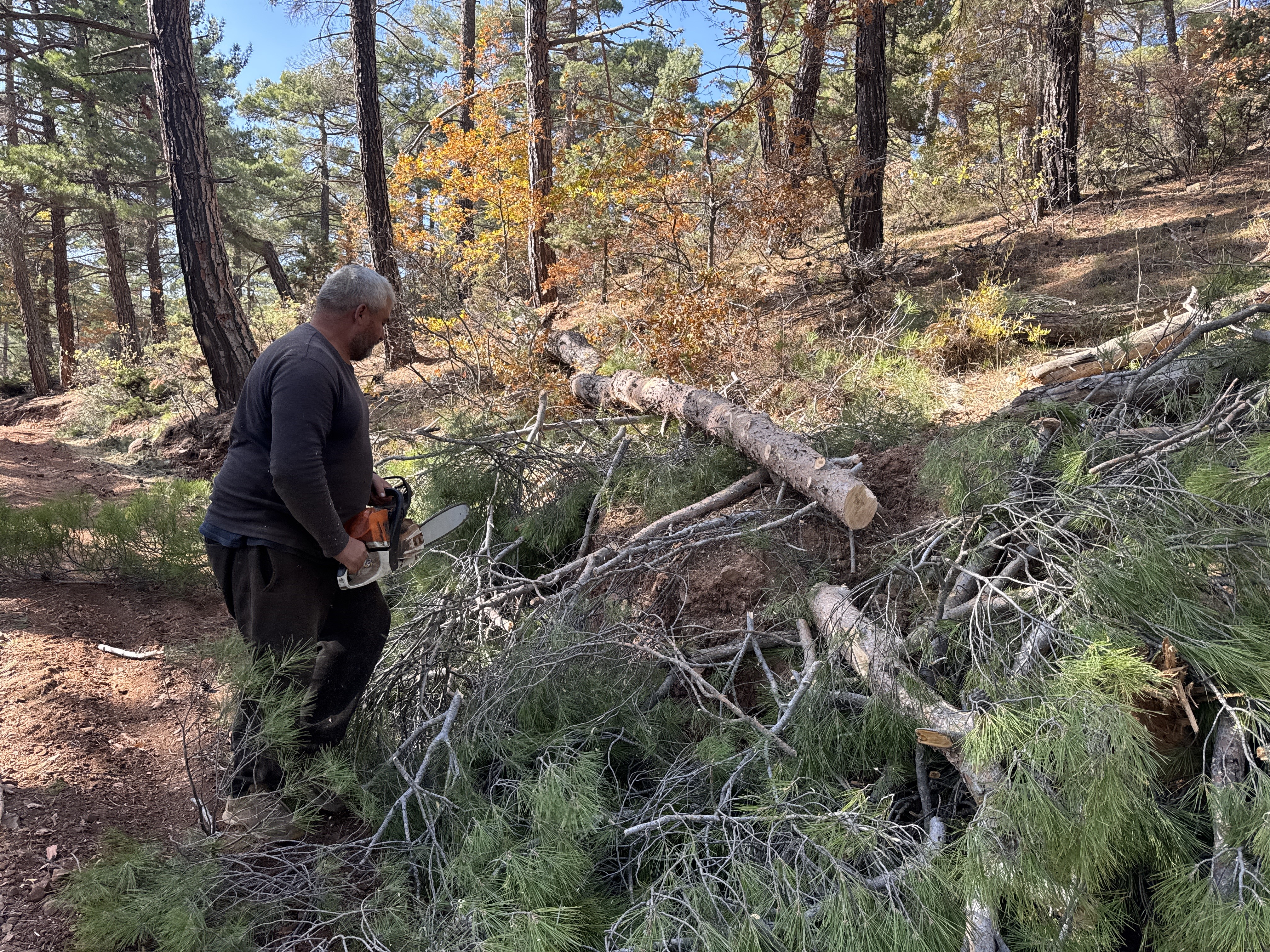 Akseki Orman İşletme Müdürlüğü tarafından Toros Dağları’nda damgalanan ağaçları kesen Mehmet Güneş, kesilen ağaçları traktörün arkasına bağlayarak yol kenarına kadar indiriyor. Burada eşi Esen Gül ile birlikte tomrukların kabuklarını el motorlarıyla soyuyor, ardından odunları "ster" düzenine göre hazırlıyorlar. Hazırlanan tomrukların metreküp ölçümleri yapıldıktan sonra teslimat, Orman İşletme Müdürlüğü yetkililerine gerçekleştiriliyor. Zorlu doğa şartlarına rağmen mesleklerini severek yaptıklarını belirten Güneş çifti, Torosların dik yamaçlarında adeta yaşamla mücadele ederek ekmeklerini kazanıyor.
