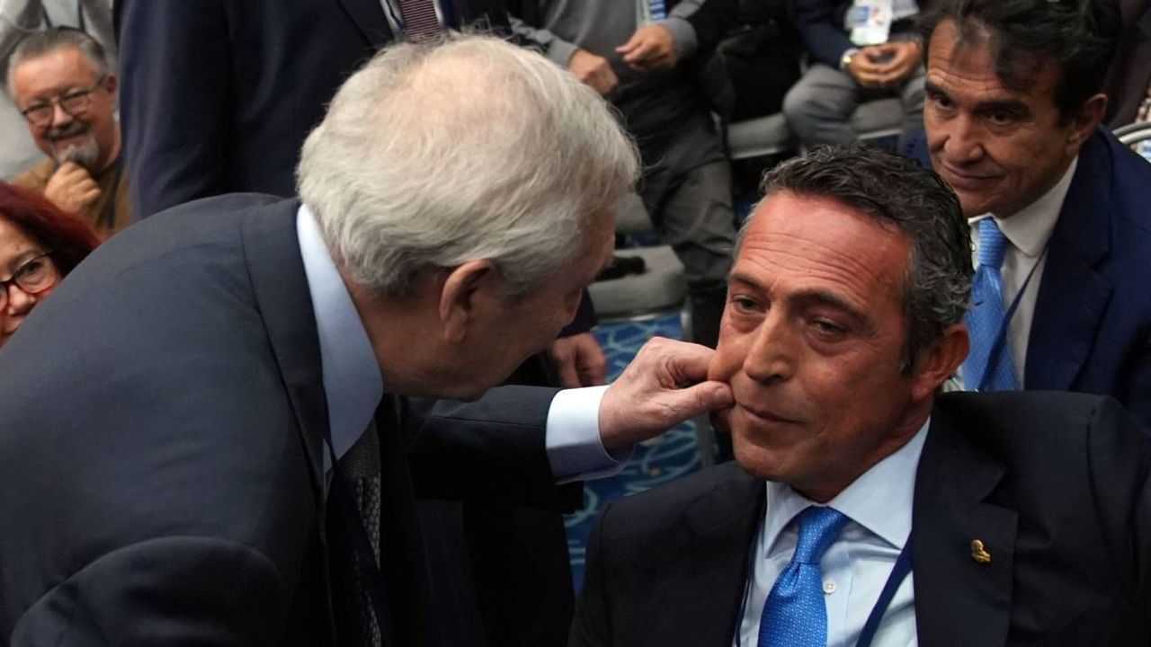 Fenerbahçe Olağan Yüksek Divan Kurulu Toplantısı, Fenerbahçe Faruk Ilgaz Tesisleri’nde yapılıyor. Eski başkanlardan Aziz Yıldırım, kürsüde yaptığı konuşmasının ardından Başkan Sadettin Saran ve yönetiminin elini sıkarken, yerini geçtiği esnada Ali Koç’un yanına gitti. Kürsüde kendisinden bahsetmesi üzerine, unutmasını söyleyen Yıldırım’a Koç, "Sağlığınıza çok üzülüyorum, Allah yardımcınız olsun" yanıtını verdi.