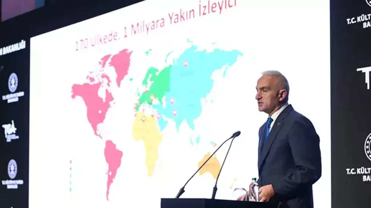 Kültür ve Turizm Bakanı Mehmet Nuri Ersoy, “Bakanlığımızın sunduğu desteklerin de çok ciddi fark yarattığı sinema ve dizi sektörü, başlı başına muazzam bir etki alanına erişmiş durumda. Özellikle dizilerimizin yakaladığı başarı, bugün Türkiye'yi dünyanın en çok dizi ihraç eden ülkelerinden biri konumuna getirmiş ve izlendiği ülkelerde Türkiye'ye dair ciddi bir farkındalık ve merak oluşturmayı başarmıştır. Bu gerçekler ışığında bugün sizlerle Türk dizilerini, tanıtım ve turizm stratejimizin merkezine aldığımız yeni vizyonumuzu, bu doğrultuda atmayı planladığımız adımları paylaşacağız. Bugün dizi sektörümüz Asya'dan Amerika'ya, Afrika'dan Avrupa'ya uzanan muazzam bir coğrafyada, yaklaşık 170 ülkedeki 1 milyara yakın insanın hayatına temas eden küresel bir markadır. Halihazırda Türkiye, satış ve ihracat gücü açısından dünyanın en büyük üç televizyon endüstrisinden biri haline gelmiştir. Sektörümüz, 1 milyar doları aşan ihracat geliriyle son dönemde tarihi bir eşiği de geride bırakmıştır" dedi.