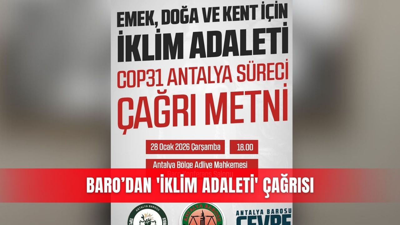 Antalya Barosu, COP31 sürecini "emeğin, doğanın ve kentin sesiyle güçlenen" bir yapıya kavuşturmak amacıyla; baroları, sendikaları ve meslek odalarını, yerel yönetimleri, üniversiteleri, ekoloji ve kent hareketlerini, katılımcı ve yatay bir biçimde bir araya gelmeye davet etti. İklim krizine karşı adalet merkezli bir toplumsal zemin oluşturmayı hedefleyen Antalya Barosu Çevre ve İmar İzleme Kurulu, sürecin yol haritasını belirlemek üzere tüm ilgili kurum ve oluşumları gerçekleştirilecek olan ilk toplantıya davet ederek çağrısını sonlandırdı.