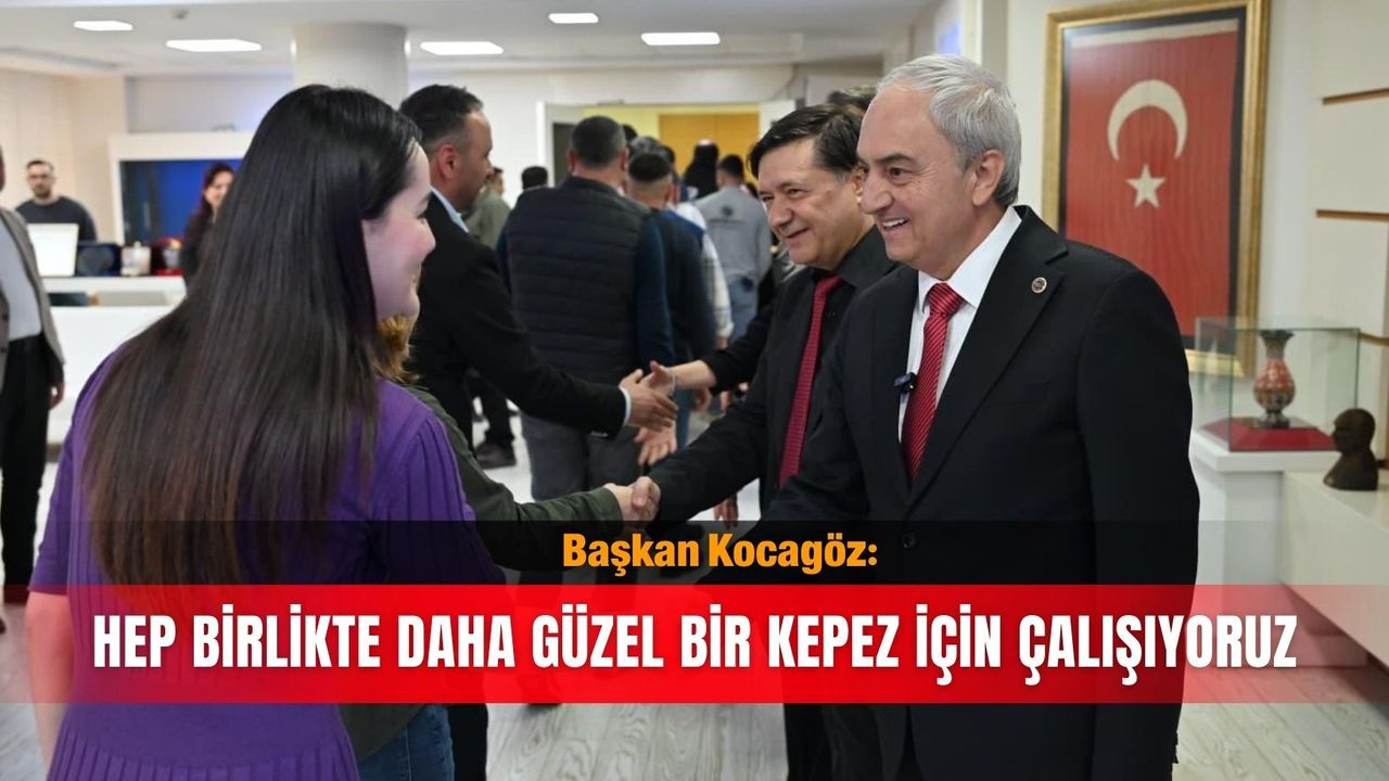 Kepez Belediyesi'nde geleneksel bayramlaşma töreni yapıldı. Başkanlık makamında düzenlenen programa, belediyede görev yapan memur ve işçiler katılım gösterdi. Belediye personelinin bayramlarını kutlayan Başkan Mesut Kocagöz, çalışanlarla sohbet etti. Kurum içi dayanışmanın önemine dikkat çekilen buluşmada konuşan Kocagöz, Kepez'e hizmet yolunda personelin emeğinin en büyük güç olduğunu vurguladı. Başkan Kocagöz, 'Kepez'e birlikte hizmet ettiğimiz siz kıymetli çalışma arkadaşlarımla bu bayram sevincini paylaşmak benim için büyük bir mutluluk. Biz, vatandaşımıza en iyi hizmeti götürmek için gece gündüz demeden çalışan büyük bir aileyiz. Hep birlikte daha güzel bir Kepez için omuz omuza çalışmaya devam edeceğiz. Tüm mesai arkadaşlarımın ve ailelerinin Ramazan Bayramı'nı en içten dileklerimle kutluyorum' dedi.