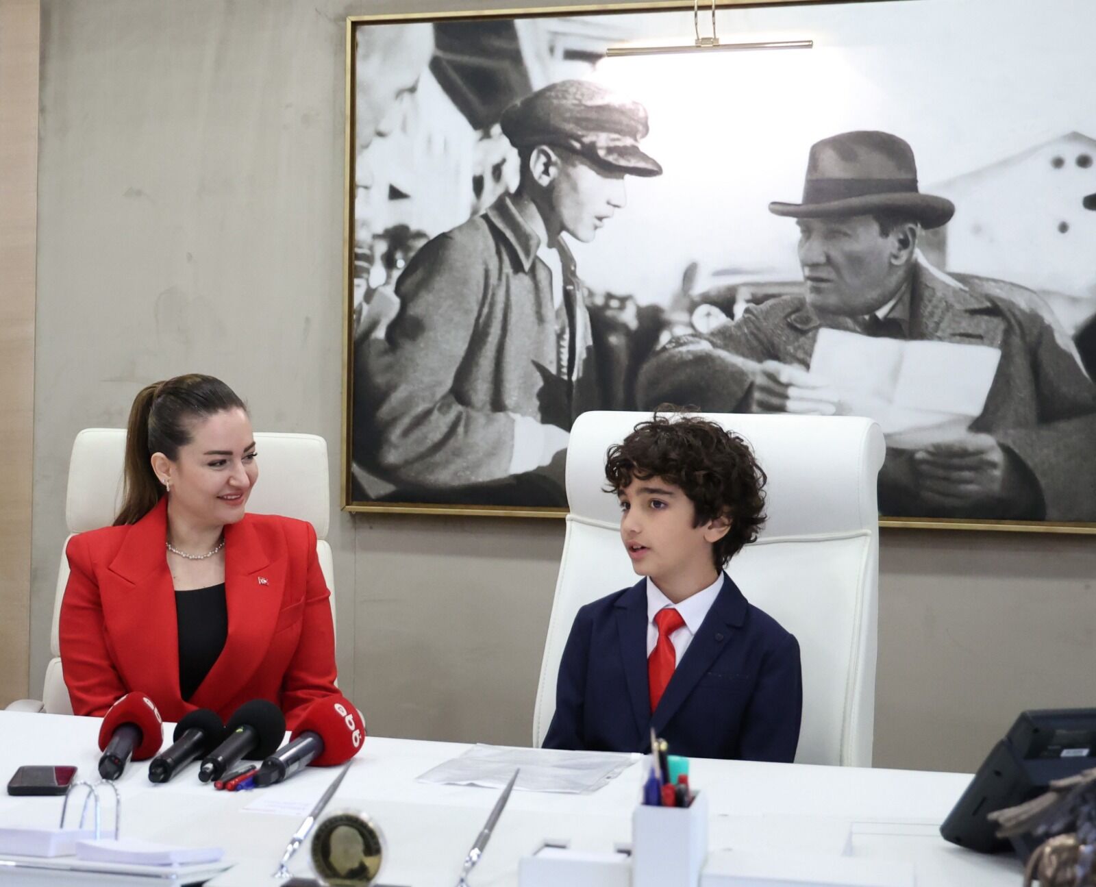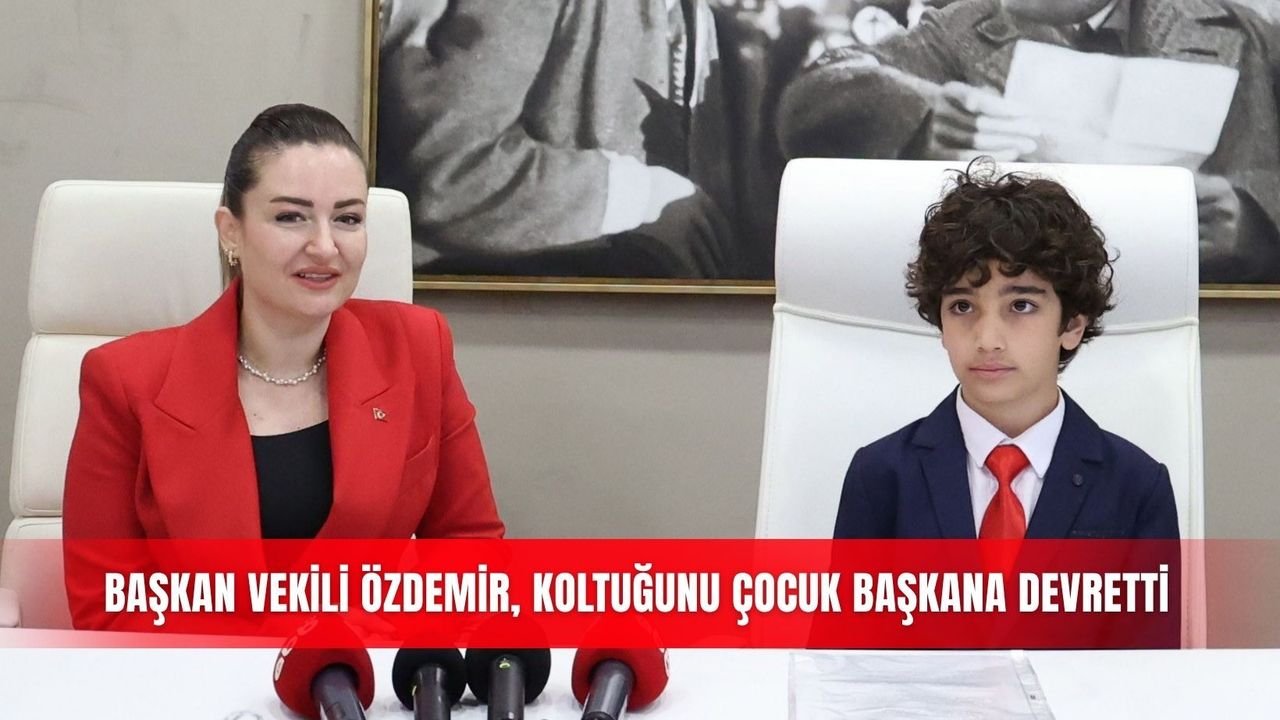Çocuk Başkan Can Toprak Güven'e koltuğunu devreden Başkan Vekili Özdemir, 'Ata'mız geleceğimizi siz çocuklara emanet etti. Çünkü sizler geleceğin karar vericilerisiniz. Bu ülke siz çocukların omuzlarında yükselecek. Halkın iradesinin karşılığı bu koltuğu sayın başkanımıza devrediyoruz. Bu andan itibaren söz sizde başkanım, şehir size emanet' dedi.