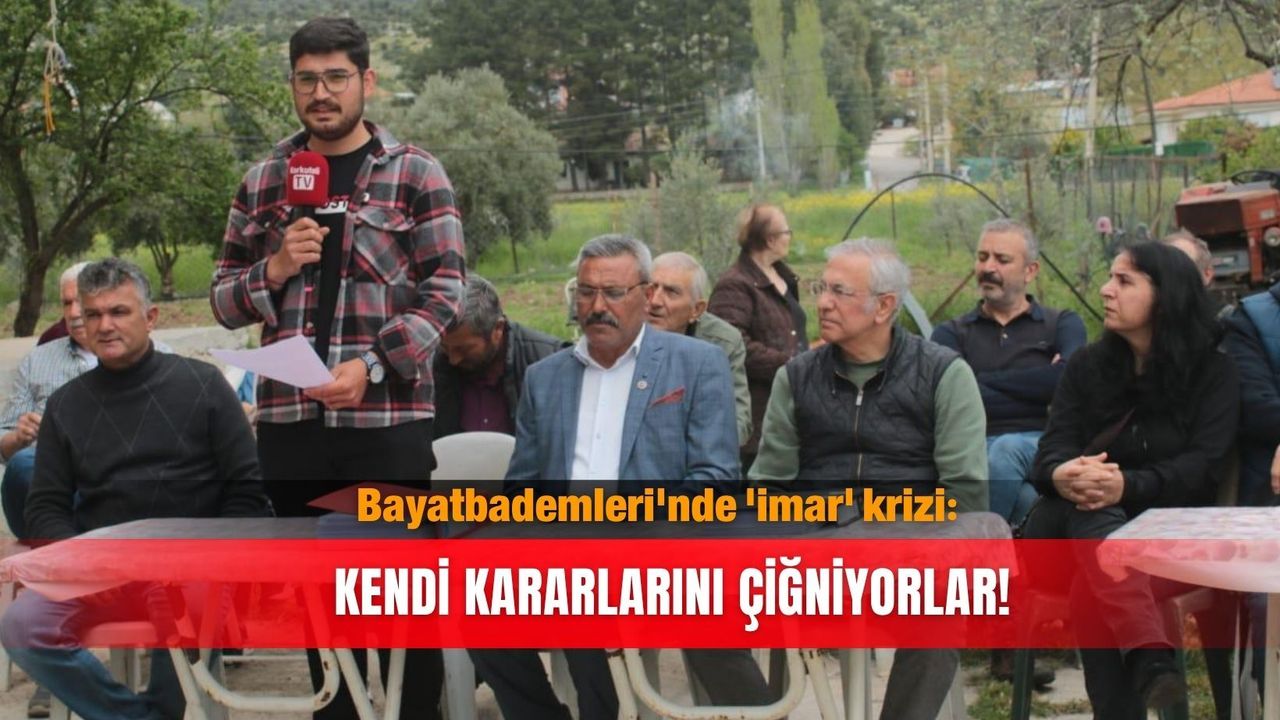 Mahalle sakinlerinin tepkisine destek veren Bayatbademleri Mahalle Muhtarı Mustafa Aldemir, yerel yönetimin kendilerine hiçbir bilgi vermeden süreci yürüttüğünü belirterek duruma tepki gösterdi. Aldemir, halkın oylarıyla seçilmiş bir temsilci olarak bu hukuksuzluğa karşı sonuna kadar mücadele edeceklerini ifade etti. Muhtar Aldemir, halktan gizli yürütülen bir süreç olduğunu ileri sürdü. İmar çalışması yapılırken muhtarlığa ve bölge halkına hiçbir şekilde bilgi verilmediğini belirten Aldemir, planın gizli bir şekilde meclis gündemine taşındığını öğrendiklerini söyledi. Mahallenin 'Kırsal Mahalle' statüsünde olduğunu hatırlatan Aldemir; meraların, tarlaların ve üretim yerlerinin korunmadan mahallenin tamamının imara açılmak istenmesinin kabul edilemez olduğunu vurguladı. Mevcut yapılaşmaya bile yaz aylarında suyun yetmediğini belirten Aldemir, "Yüksek kesimlerde çok fazla su sıkıntısı yaşanıyor. Daha önce imara açılan Horcak mevkiinde yapılaşma arttıkça sorun daha da büyüdü. Mevcut yapıya su veremezken, 10 bin kişilik bir plan doğa katliamıdır" dedi. Belediye yönetiminin halkı dinlemediğini ifade eden Muhtar Aldemir, "Halkın istemediği bir şeyi zorla dayatmanın bir anlamı yok. Biz muhtarlık olarak halkın çoğunluğu ne istiyorsa onun yanındayız" ifadelerini kullandı. Bayatbademleri halkı ve muhtarlık, 2021 yılındaki iptal kararının arkasında durduklarını belirterek, yetkilileri bir an önce bu yanlıştan dönmeye davet etti.