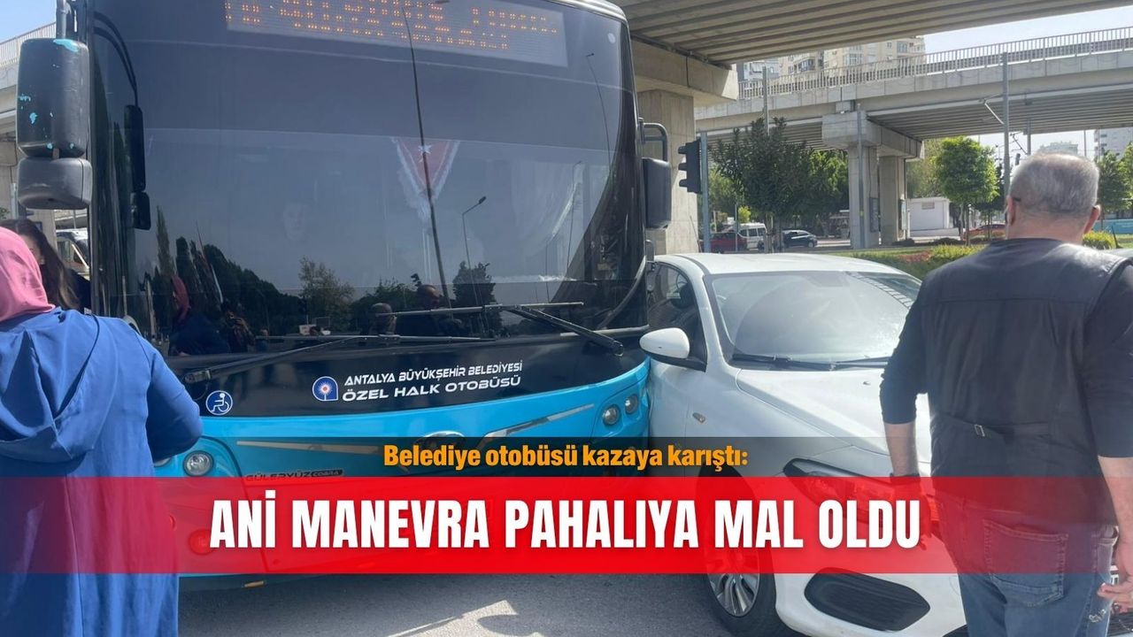Antalya’da sabah saatlerinde meydana gelen trafik kazasında, Antalya Büyükşehir Belediyesi’ne ait bir otobüs Akdeniz Üniversitesi Meltem Kapısı önünde kazaya karıştı.