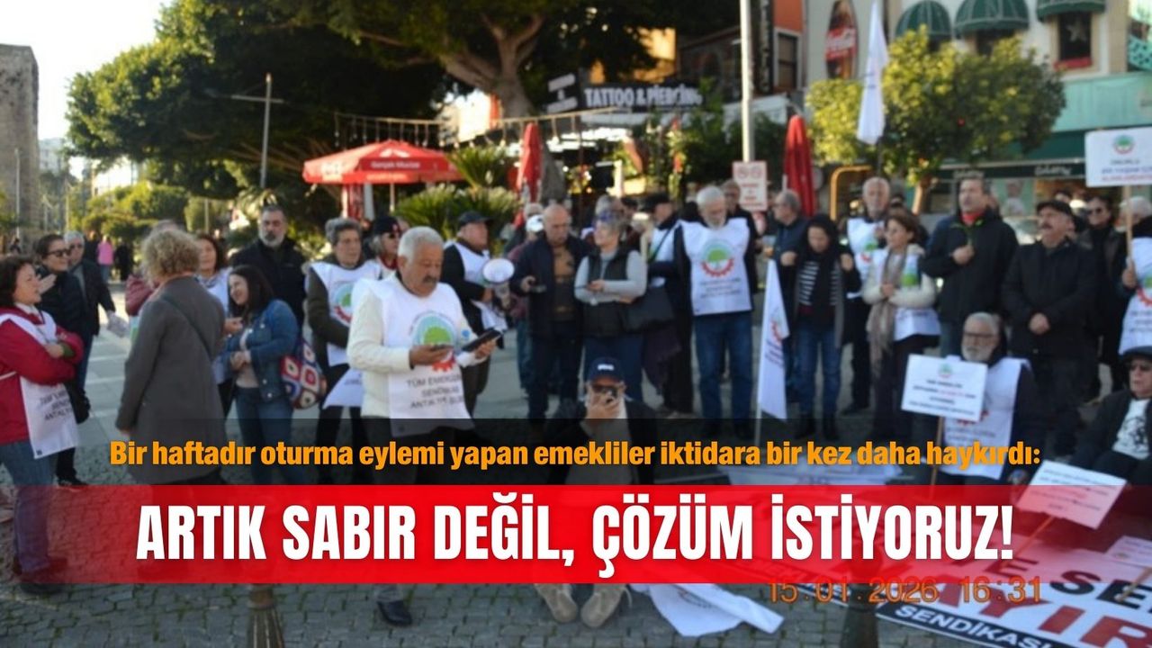 Türkiye’nin birçok ilinde olduğu gibi Antalya’da da emekliler, artan hayat pahalılığına, düşük maaşlara ve temel ihtiyaçlara erişimde yaşanan zorluklara dikkat çekmek amacıyla bir araya geldi. Tüm Emekliler Sendikası öncülüğünde Attalos Heykeli önünde düzenlenen oturma eyleminde basın açıklamasını sendika adına okuyan Ferzan Sarsılmaz, emeklilerin 7 gündür alanda olduklarını belirterek, “Buradayız çünkü geçinemiyoruz, görmezden geliniyoruz. Açlık sınırı 30 bin liraya dayanmışken, milyonlarca emekliye reva görülen maaşlar bunun çok altında kalmıştır. Açlık sınırının altında yaşam dayatmasını kabul etmiyoruz” diye konuştu.
