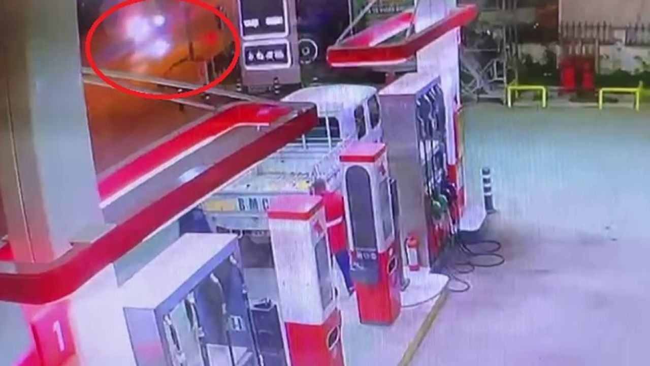 Korku dolu anlar, akaryakıt istasyonunun güvenlik kamerasına saniye saniye yansıdı.