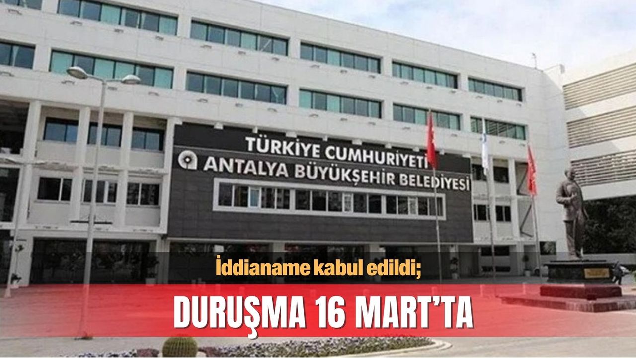 Antalya Cumhuriyet Başsavcılığı tarafından Büyükşehir Belediyesine yönelik yürütülen rüşvet ve yolsuzluk soruşturması kapsamında hazırlanan iddianame, Antalya 6'ncı Ağır Ceza Mahkemesi tarafından kabul edildi. Davanın ilk duruşması 16 Mart'ta görülecek.